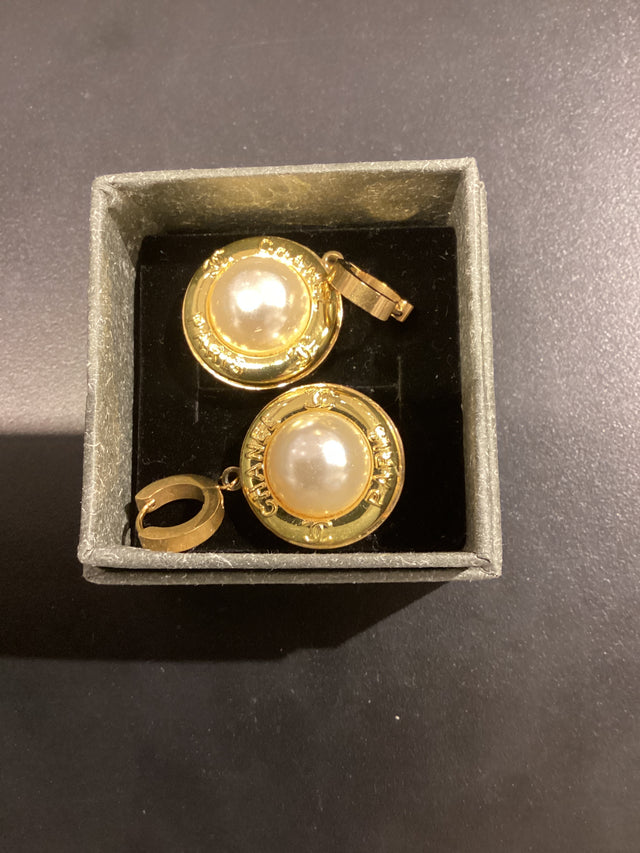 22Z EARRINGS C BUTTON GOLD/PEARL/HOOP DANGLES