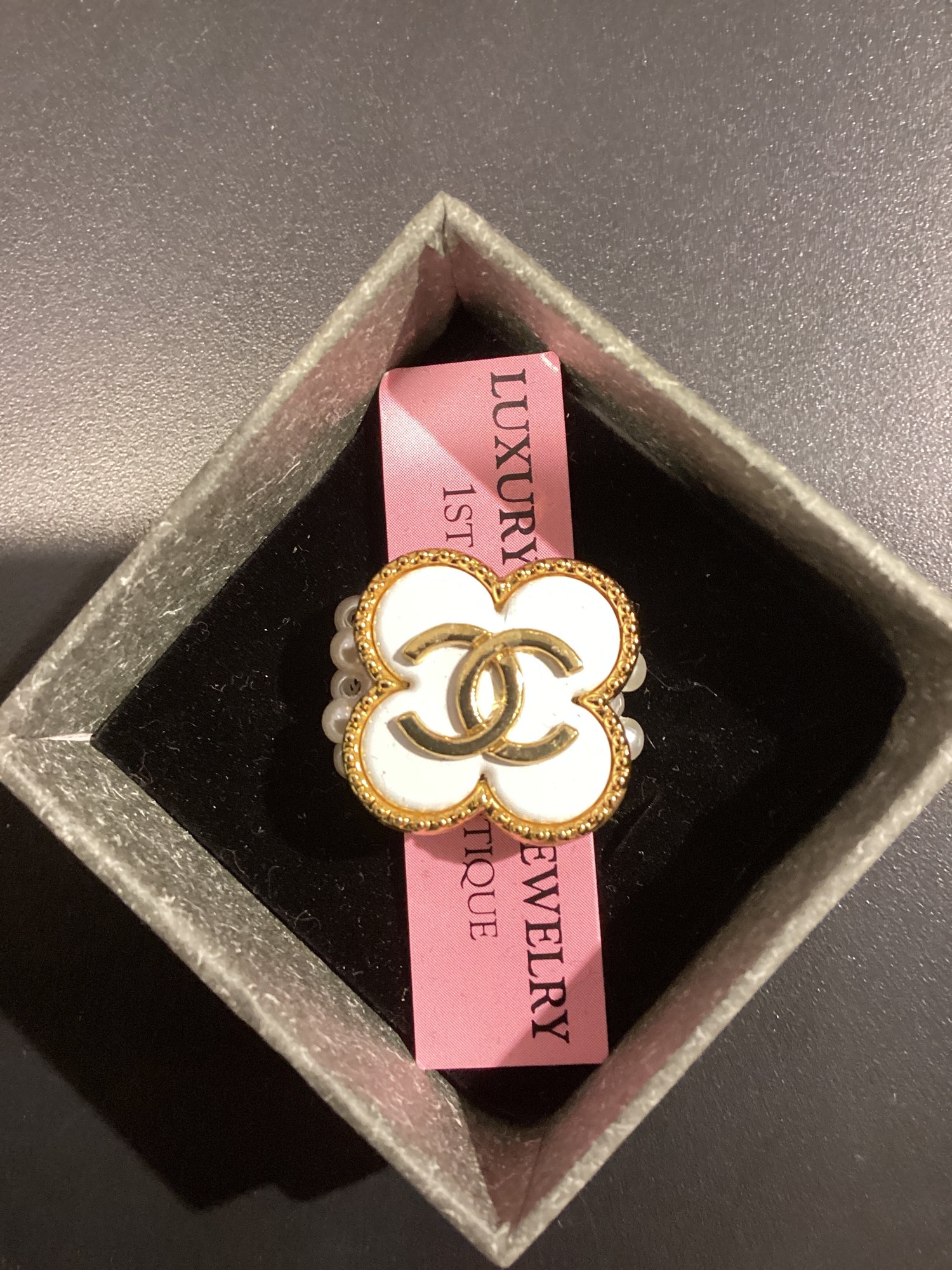 22L RING C BUTTON CLOVER/WHITE STRETCH PEARL BAND