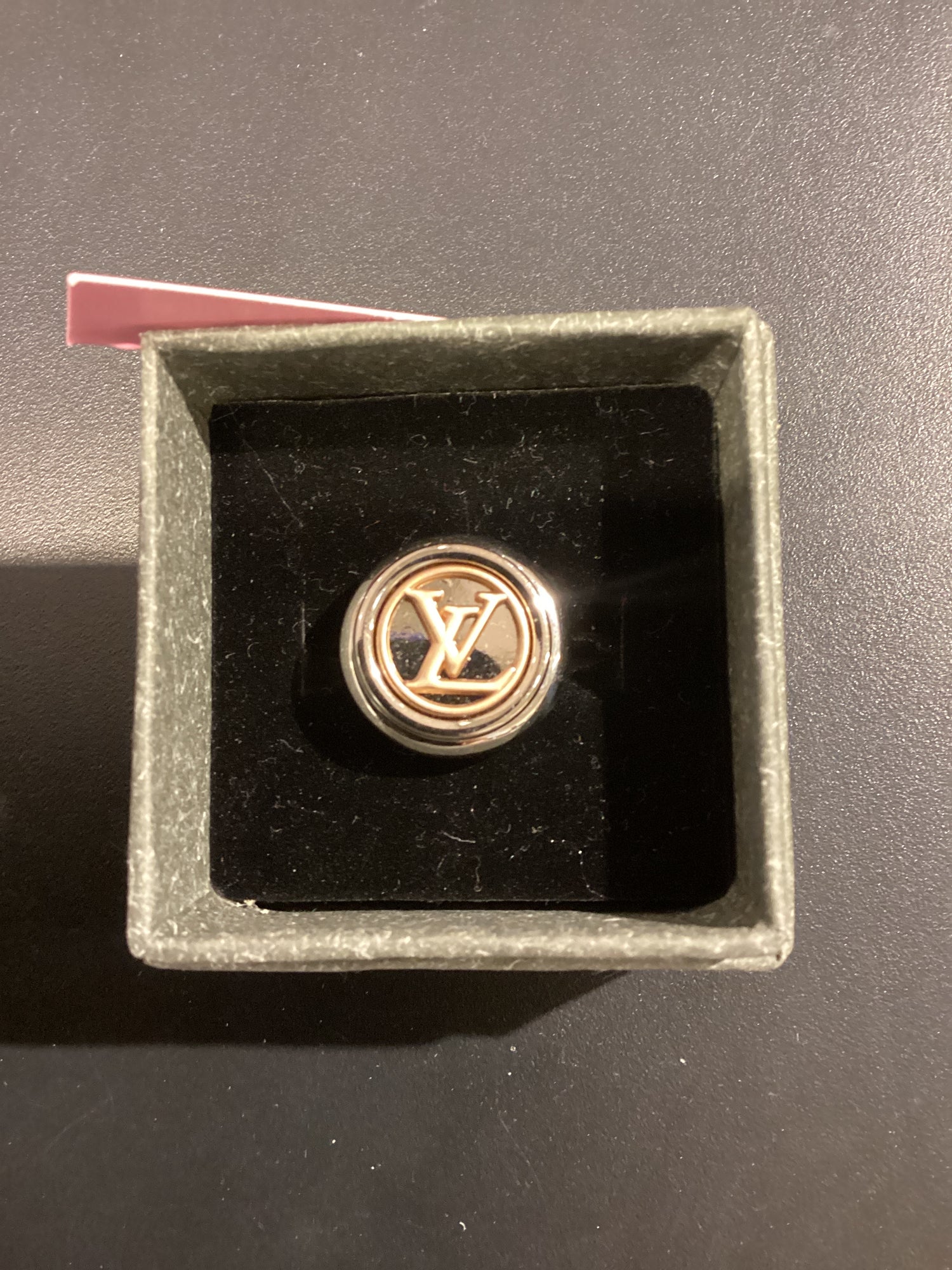 22N RING LV BUTTON SILVER/GOLD - One size is backordered and will ship as soon as it is back in stock.