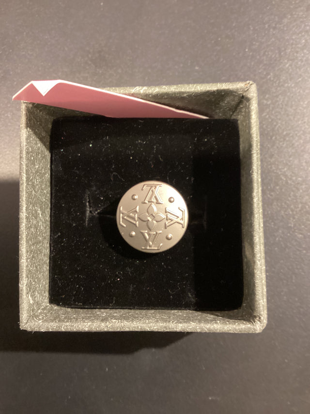 22U RING LV BUTTON MATTE SILVER - One size is backordered and will ship as soon as it is back in stock.