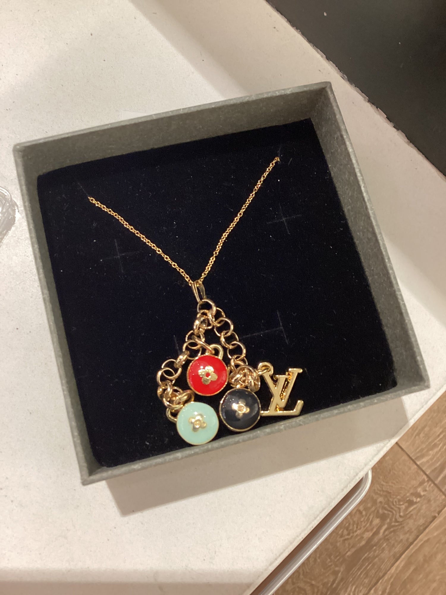 All of our luxury jewelry is made with authentic buttons handmade by Nan. We are not affiliated with any luxury brands or their subsidies.