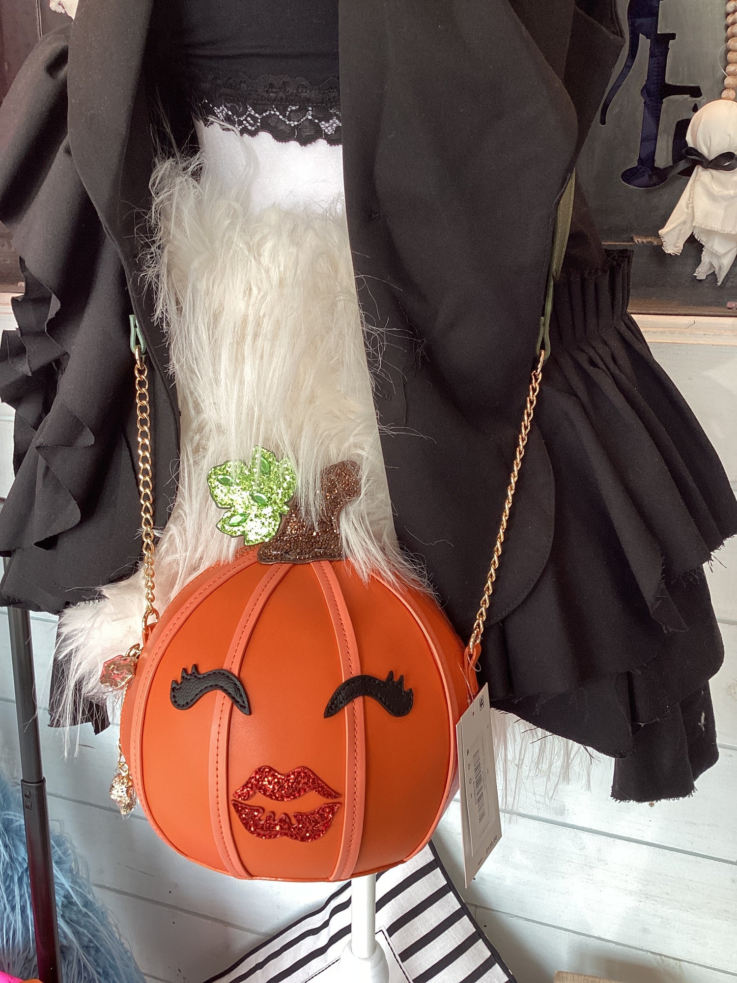 This playful pumpkin-shaped beauty from Betsey Johnson adds a splash of fall flair to any outfit, complete with adorable lip and eyelash details that are sure to make you smile. The top zipper closure keeps your essentials secure while the chic gold chain strap adds just the right touch of glam. Perfect for pumpkin spice lattes or Halloween parties, this bag is both functional and fabulous!