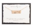 This gorgeous statement necklace includes two hand-crafted, hammered bars attached to an extra long chain. It is set onto a handmade cotton paper verse card, perfect for gift giving or to keep close by for encouragement. Bar Size: 30 x 5 mm each Chain Length: 28"