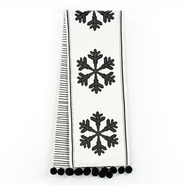 74x14 linen reversible table runner (STRIPE/SNOWFLAKES) white, black Holidays At The Haunted Mansion Collection