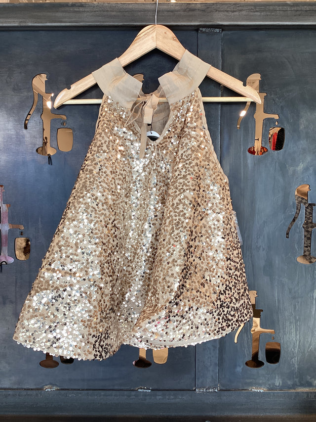 HT1075 Sequined Slvless Halter Mock Neck Top Black/Gold - Black / Small is backordered and will ship as soon as it is back in stock.