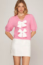 SY7696 Short Puff Sleeve Bow Front - Red / Large is backordered and will ship as soon as it is back in stock.