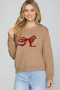 SY7738 Long Sleeve Sweater With Red Bow - Large is backordered and will ship as soon as it is back in stock.