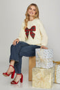 SY7848 Long Sleeve Christmas Plaid Bow Knit Top - Small / Cream is backordered and will ship as soon as it is back in stock.