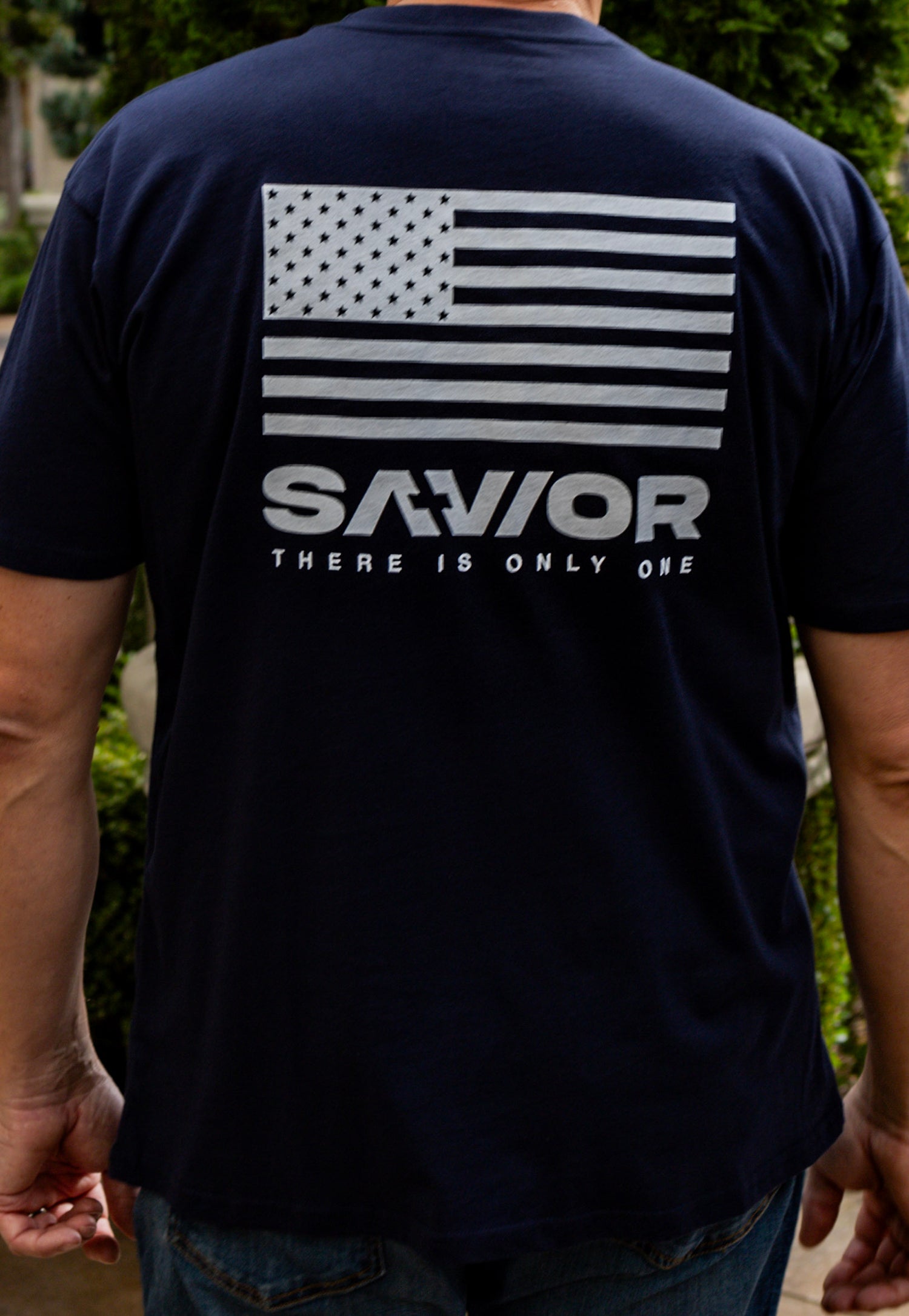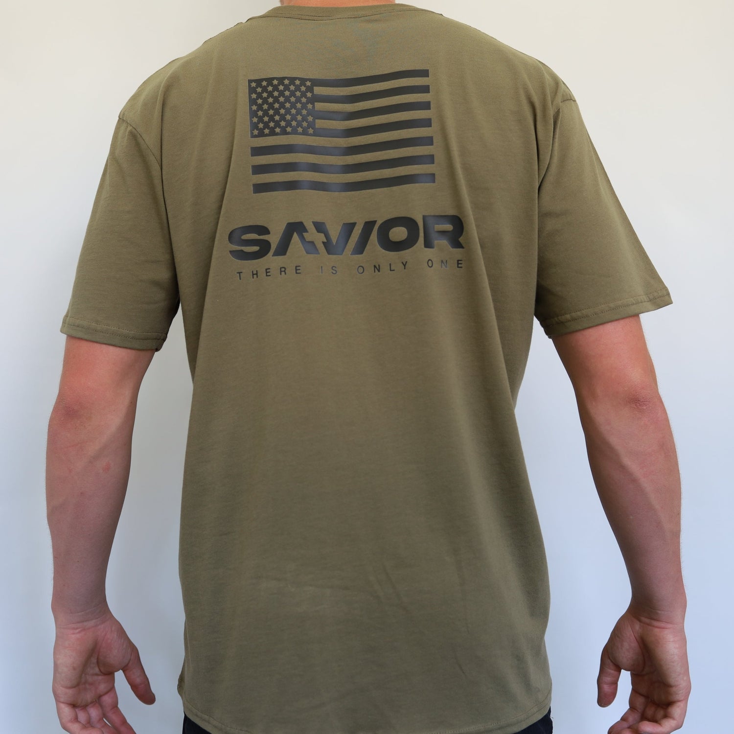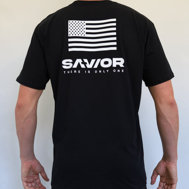 SAVIOR Brand T-Shirt Back with US flag back