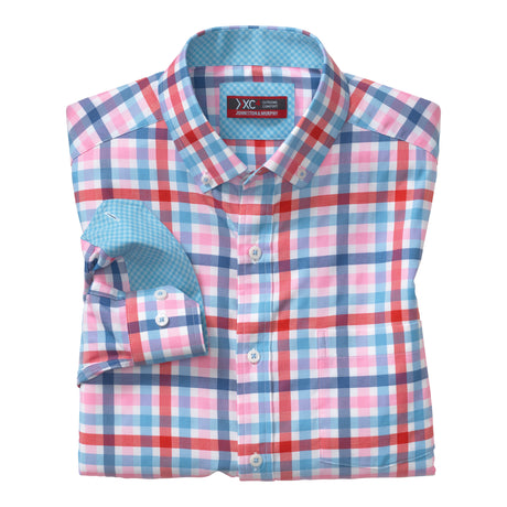 74-9305 XC4 Shirt-Blue/Red Multi Check by Johnston & Murphy