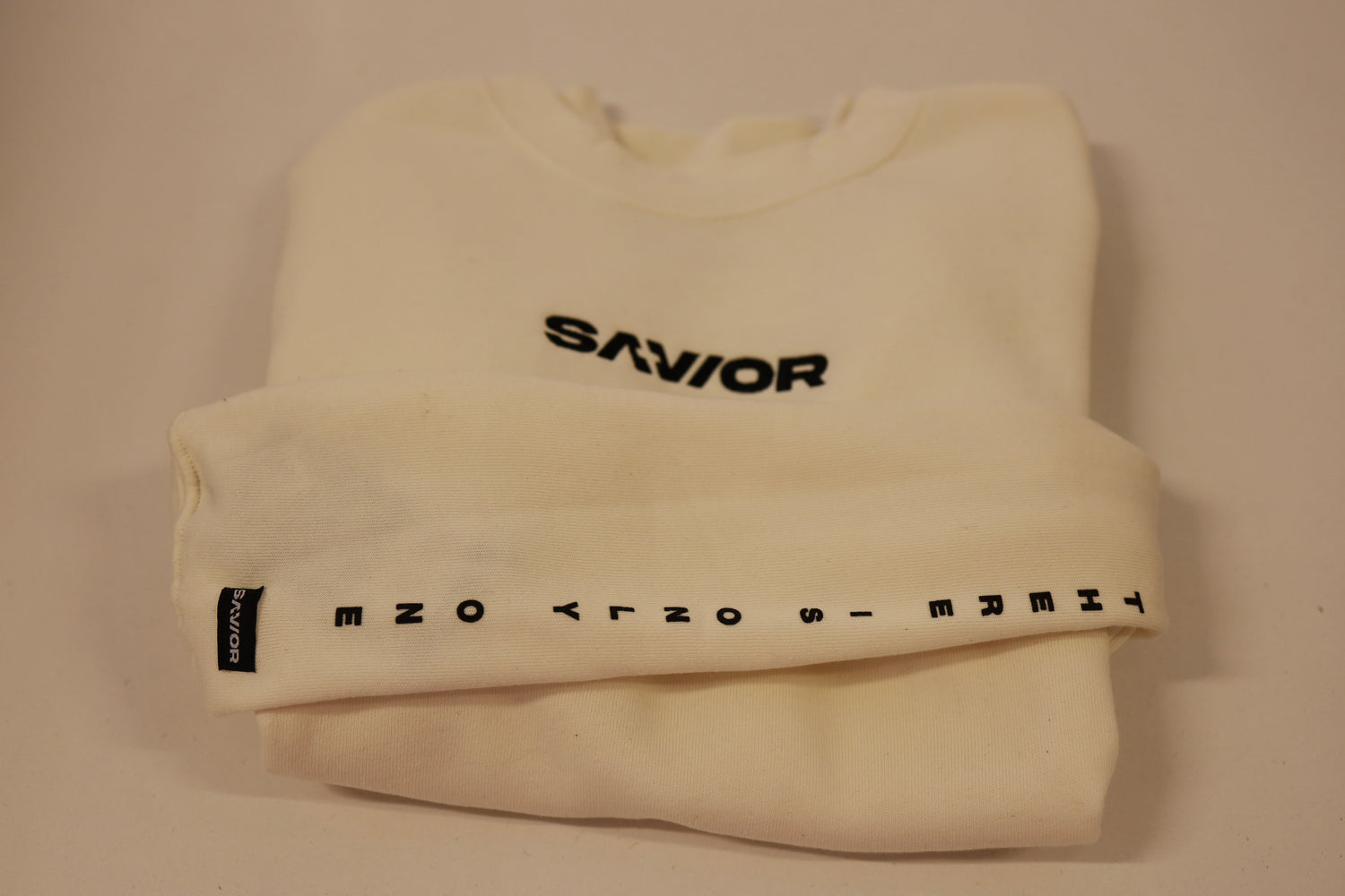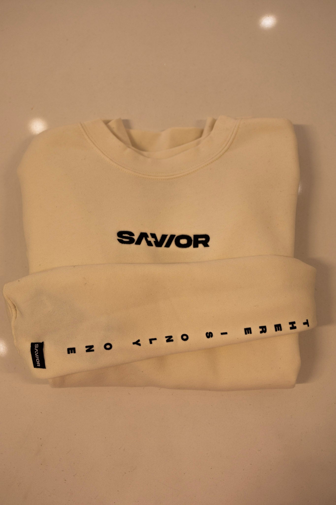 39SRSU Savior "There is Only One" Embroidered Sweatshirt - Cream / XL is backordered and will ship as soon as it is back in stock.