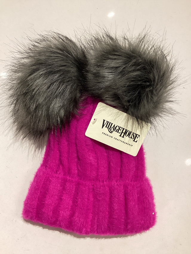 521004 Beanie dble poms Fuschia is backordered and will ship as soon as it is back in stock.