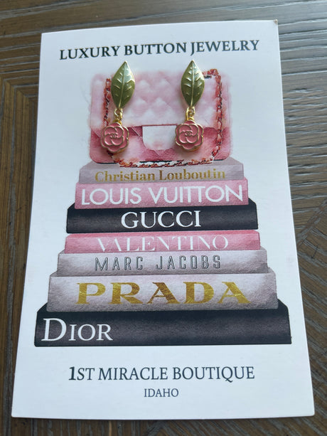 21F POST PINK CAMELLIA/LEAVES EARRINGS