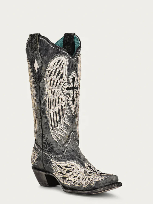 A4232-M LD Black Cross & Wings by Corral Boots - 7 is backordered and will ship as soon as it is back in stock.