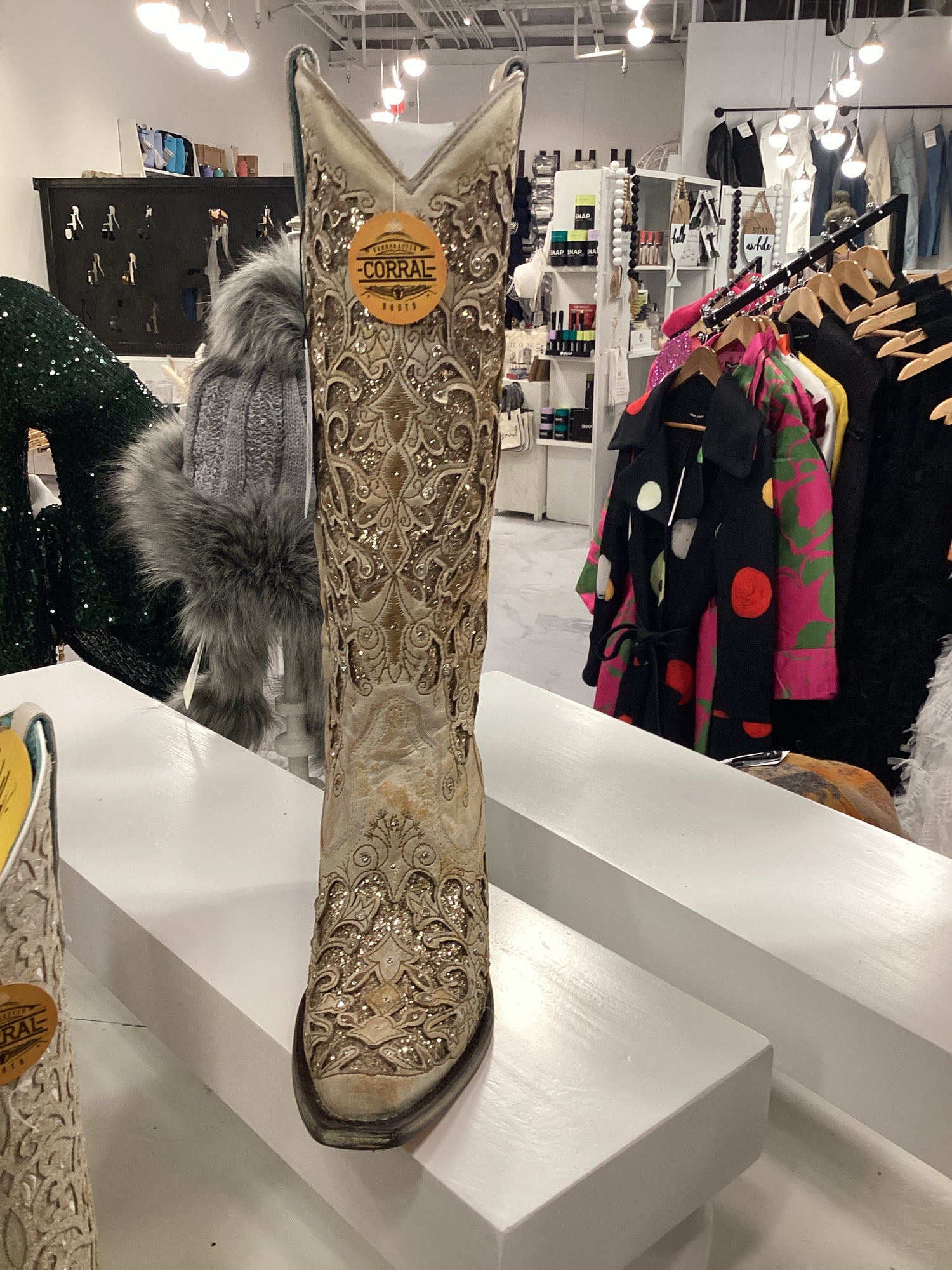 Fashionable, eye-catching, and glamorous. You can distinguish a Corral boot by its beautiful design and of course its sparkle, so go ahead and shine with this style.