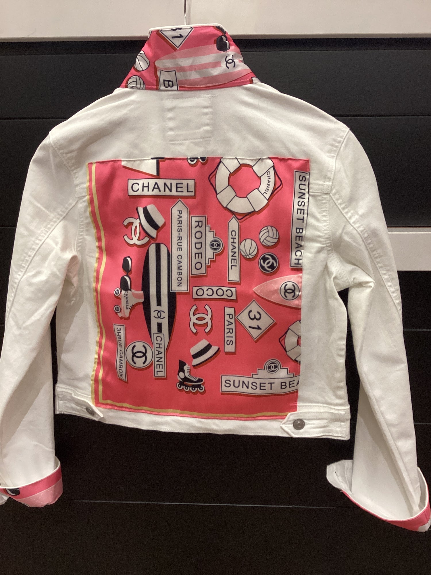 UPCYCLED VINTAGE C2 WHITE DENIM JACKET - Medium is backordered and will ship as soon as it is back in stock.