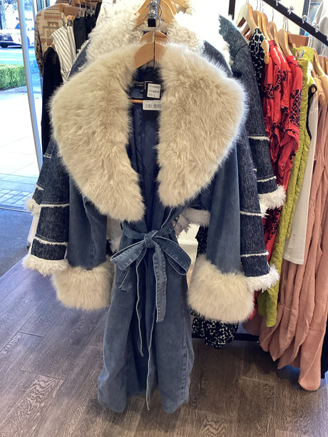 CLAWC439 Regal Embrace Faux Fur Collar Coat
