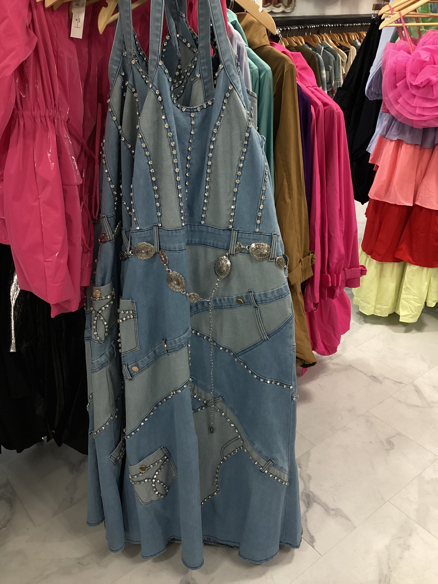 8480D Jean Rhinestone Dress