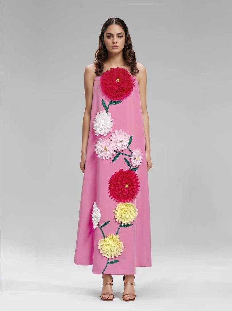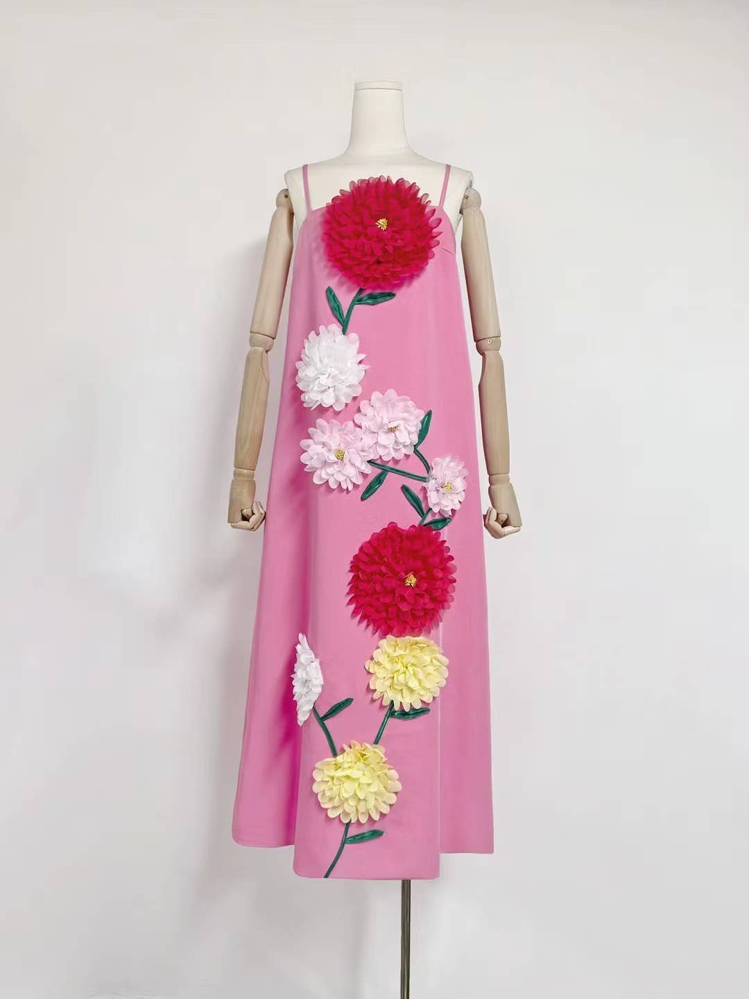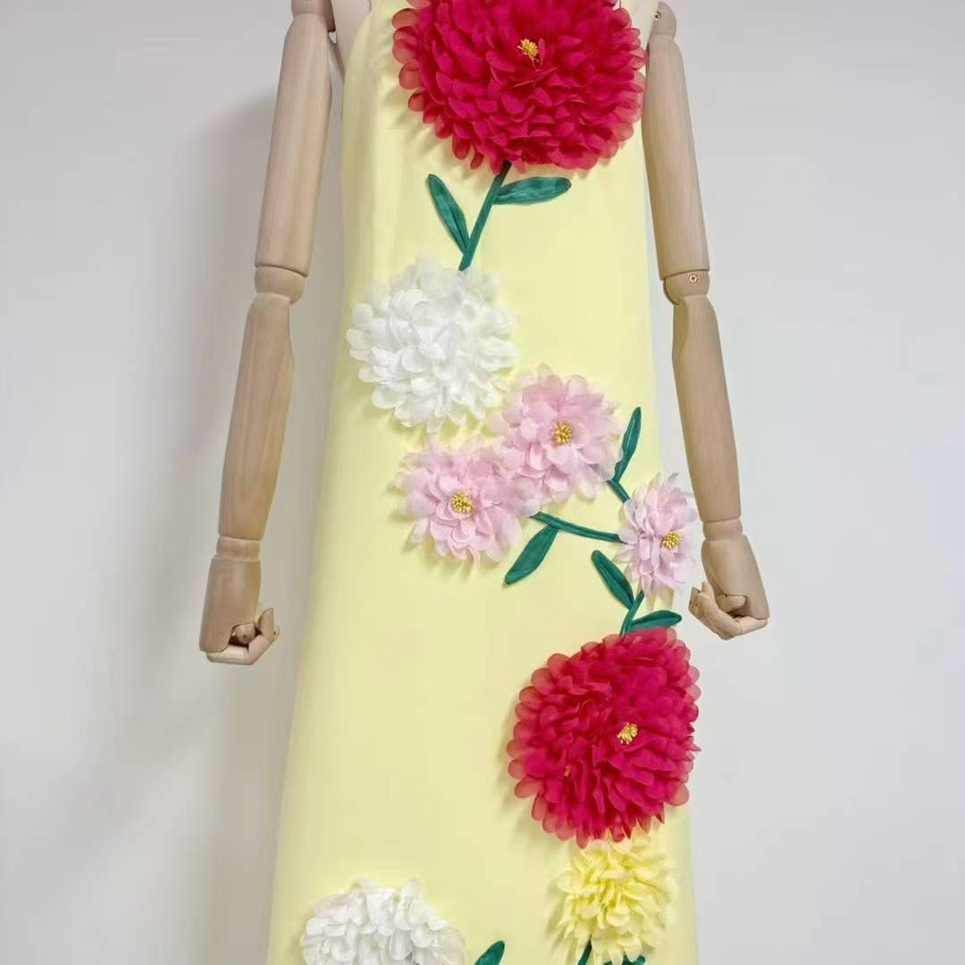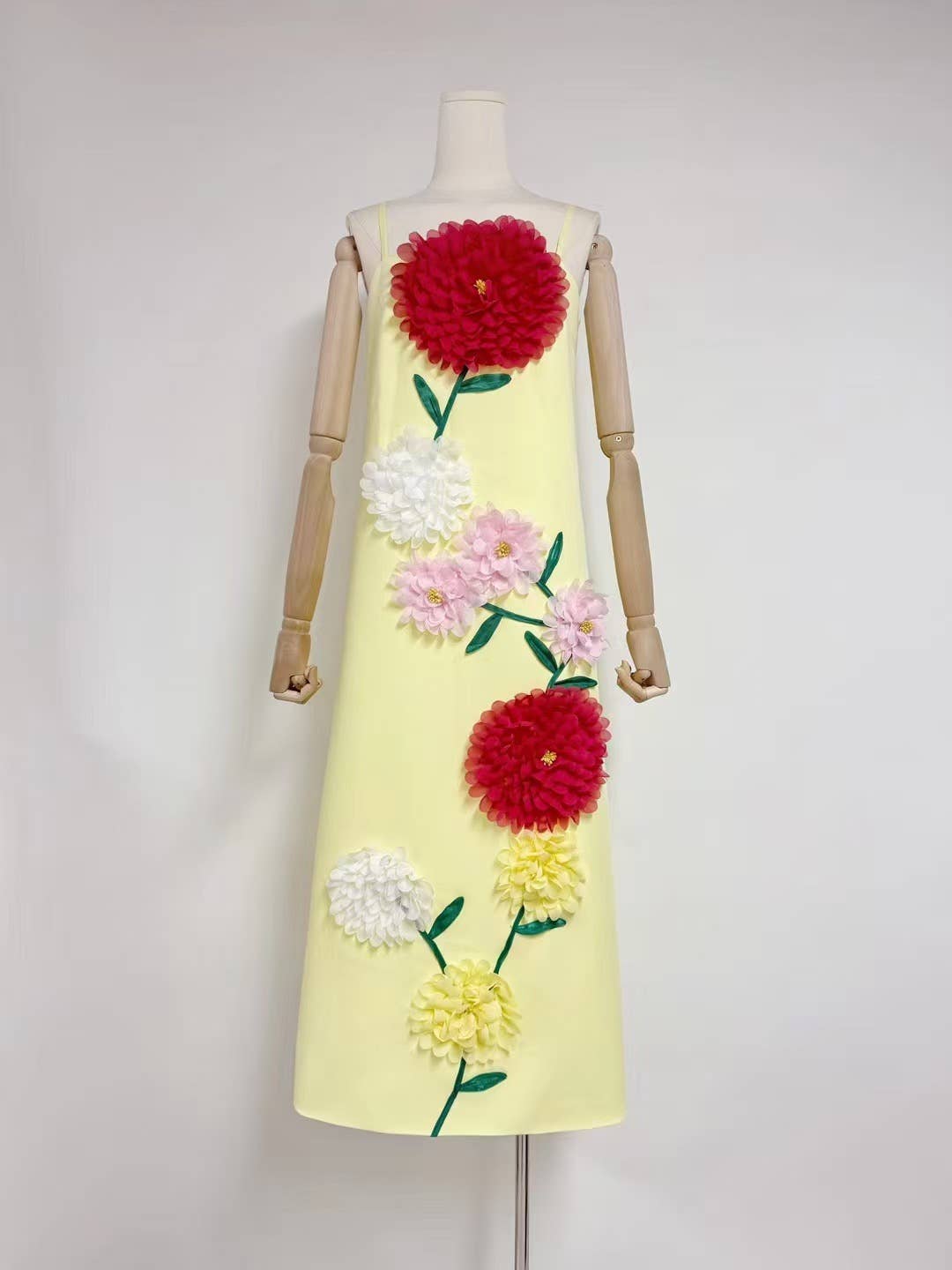 DR516Y Colorful 3D Floral Swing Suspender Long Summer Dress