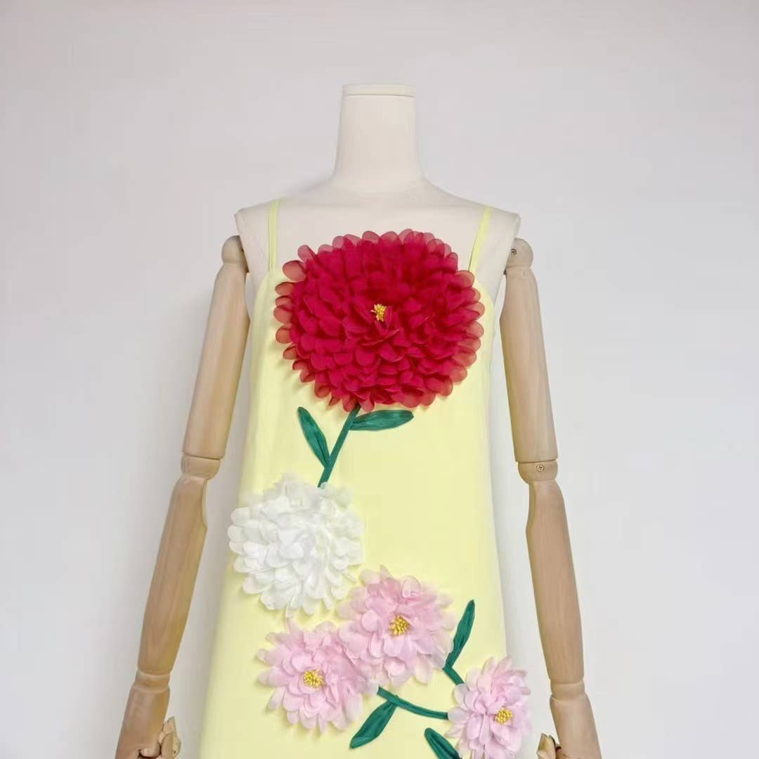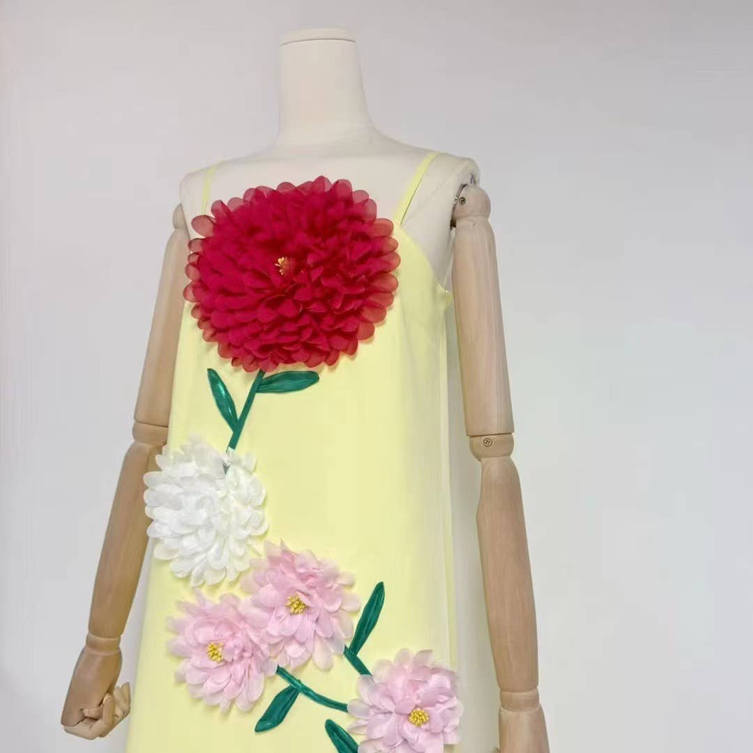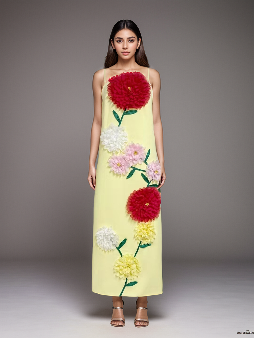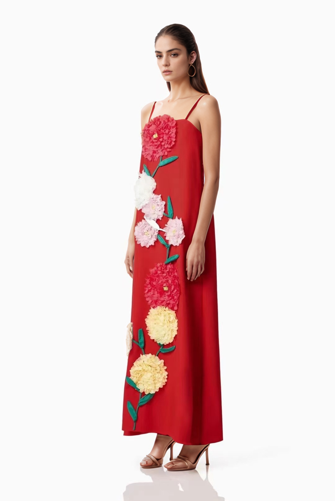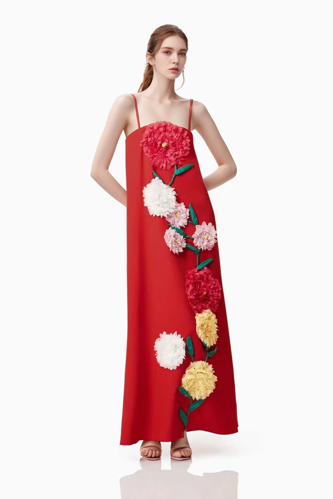 DR516Y Colorful 3D Floral Swing Suspender Long Summer Dress