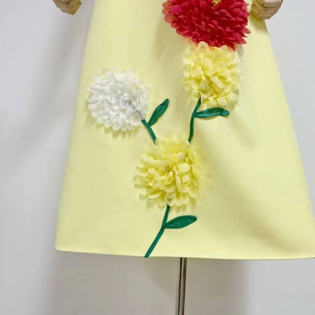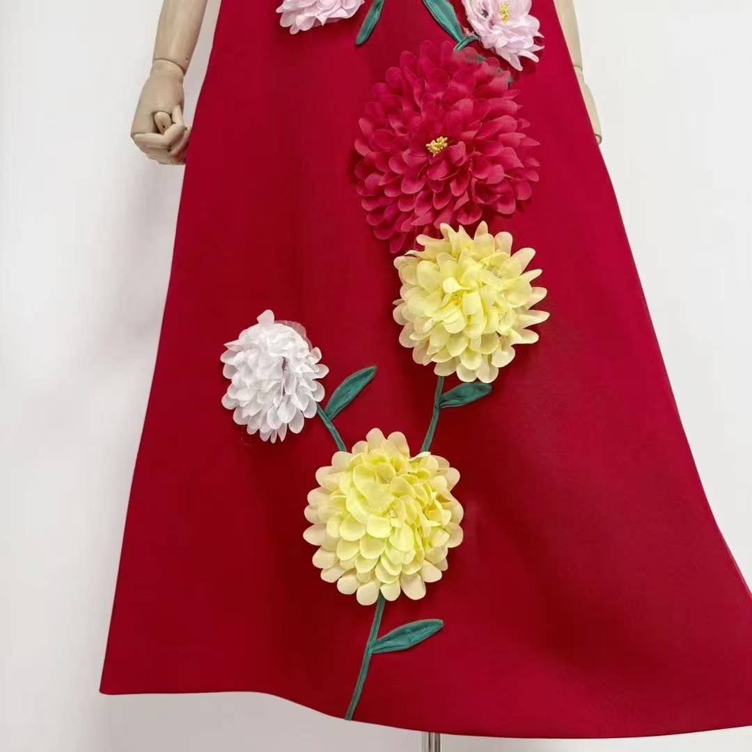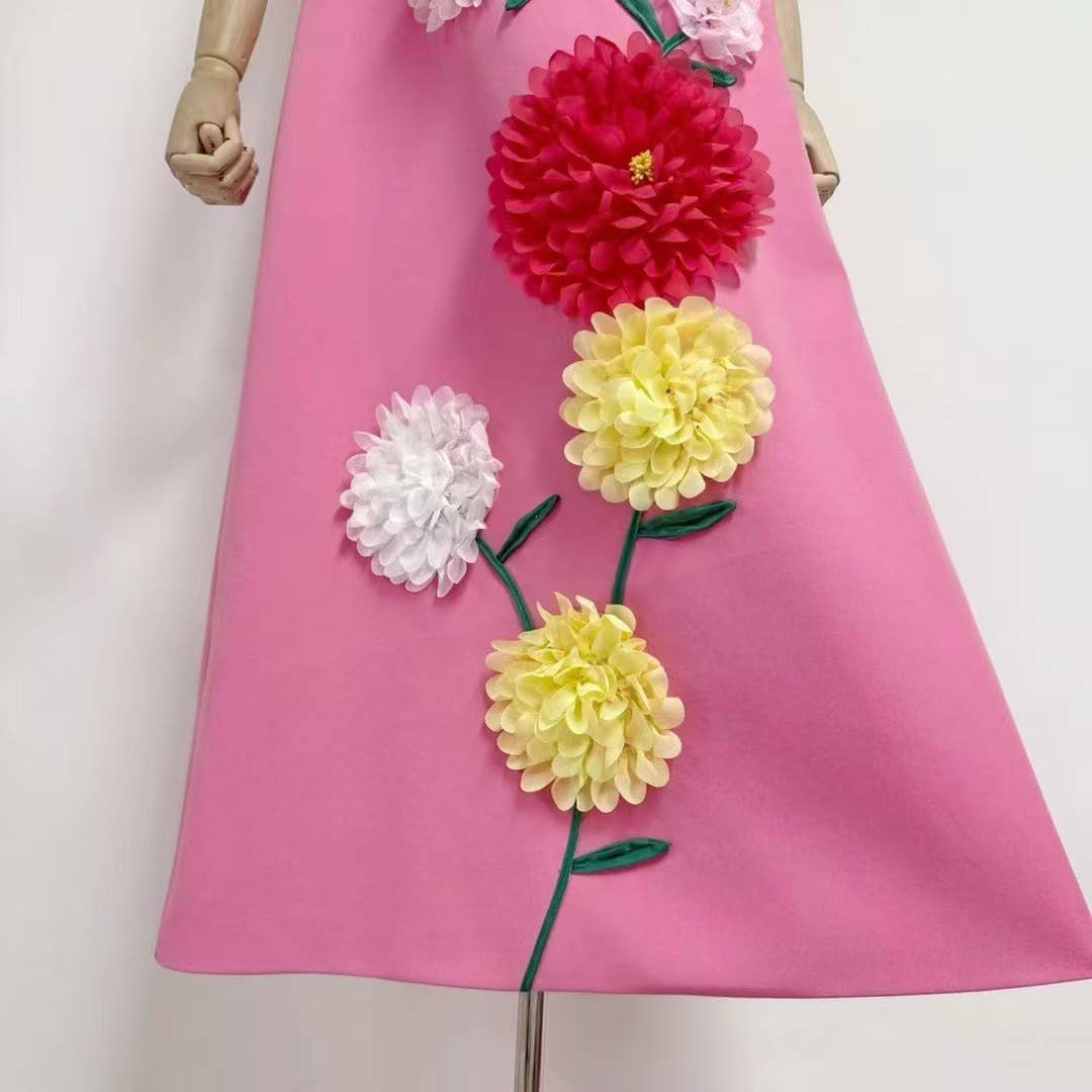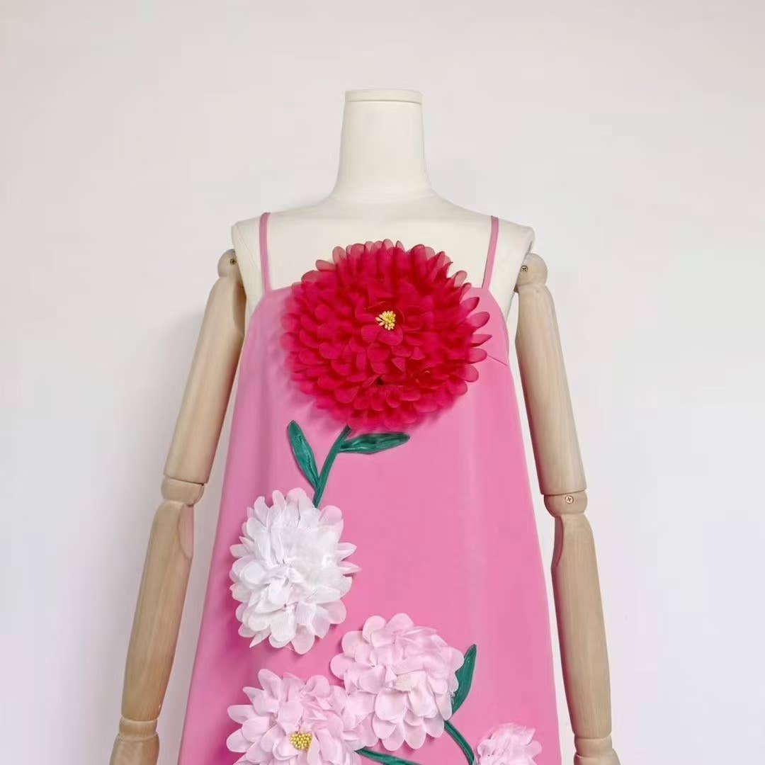 DR516Y Colorful 3D Floral Swing Suspender Long Summer Dress
