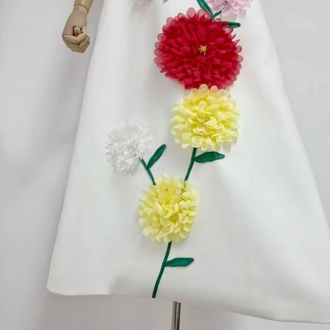 DR516Y Colorful 3D Floral Swing Suspender Long Summer Dress - English / S / White is backordered and will ship as soon as it is back in stock.