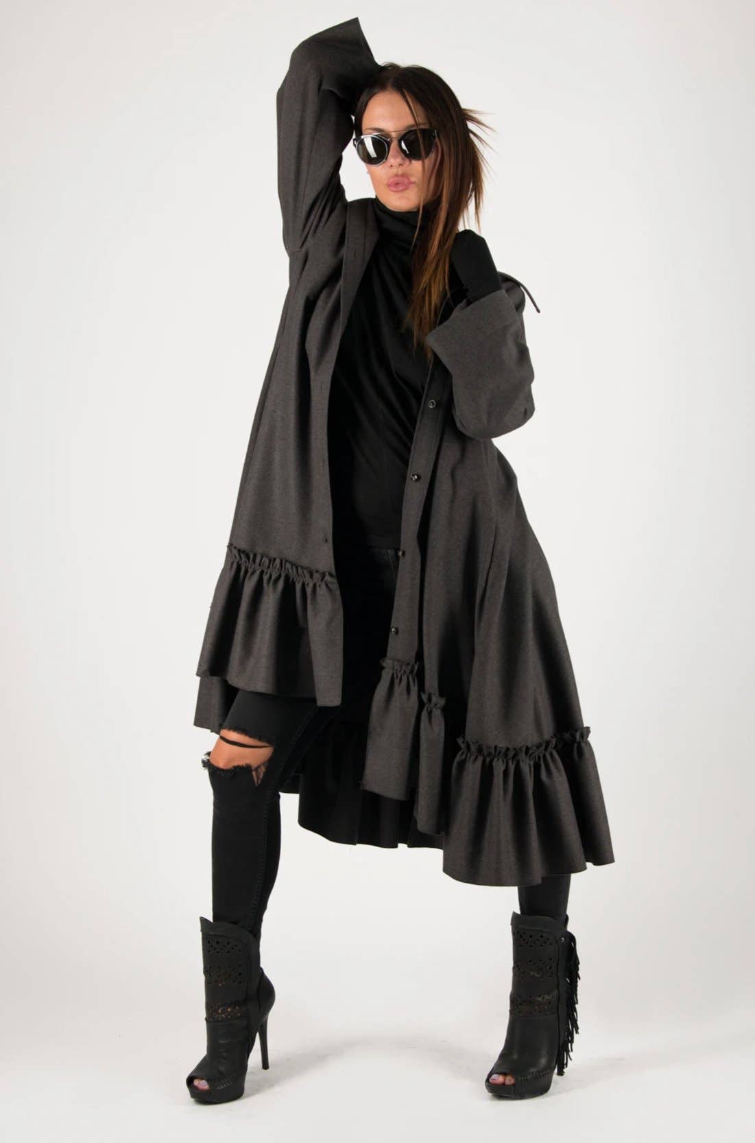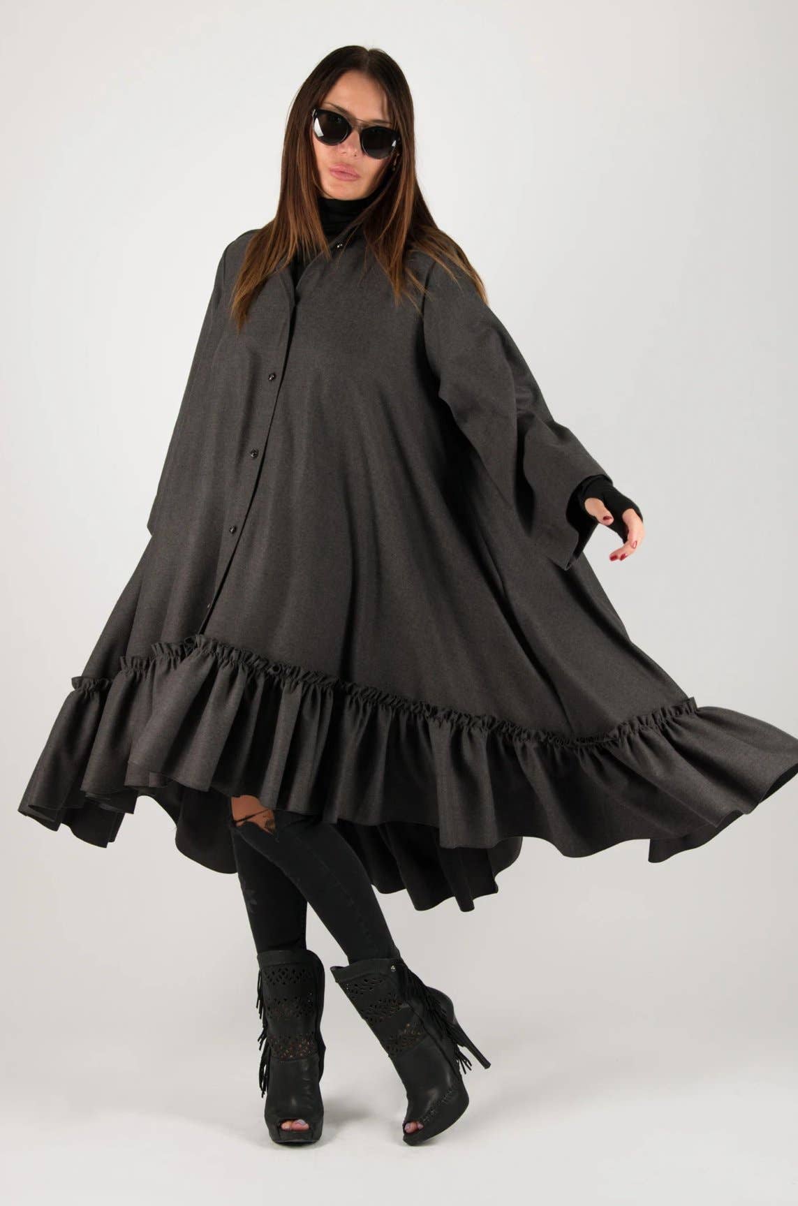 Autumn Winter  Cashmere Mid length Shirt dress with buttons fastening, collar and wide sleeves. * Made of: Wool Cashmere. * This top can be customised by size given from the client. * The model wears size M - 5′6″ / 170 cm.