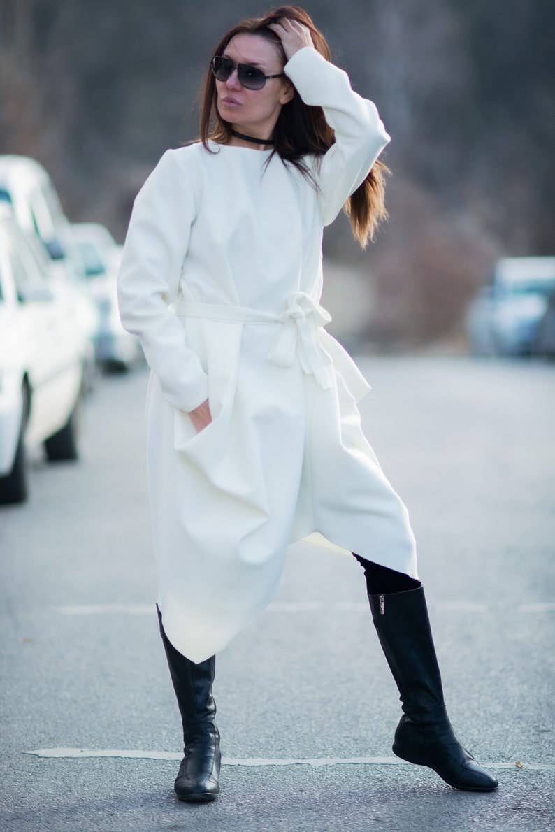 Autumn Off White Wool Cashmere Dress, Suitable for Autumn and Winter Season.