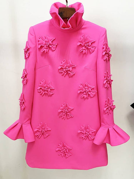 DR079 Handmade Three-dimensional Flower Bell Sleeve Dress