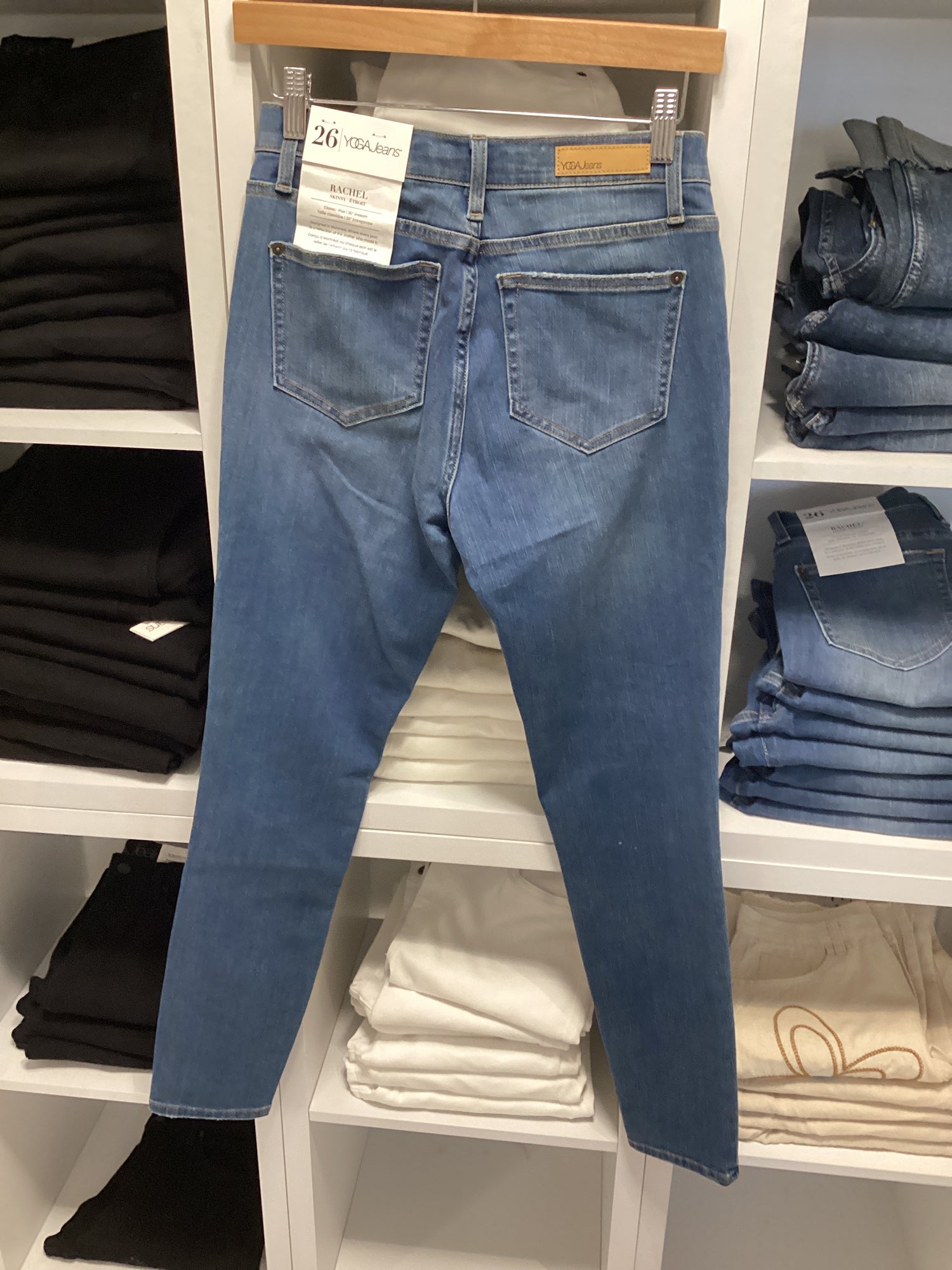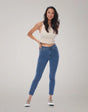 The Rachel Skinny is fitted at the hip and ankle and is worn very close to the body, creating a figure flattering fit for all body types. This classic-rise skinny jean features a 27" inseam and features a cropped length at ankle. This style features our best selling medium blue color.