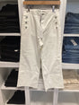 These high-rise jeans are sailor-inspired with chic side buttons and patch pockets at the back. This version comes in a timeless garment-dyed white with a cropped 25" inseam.