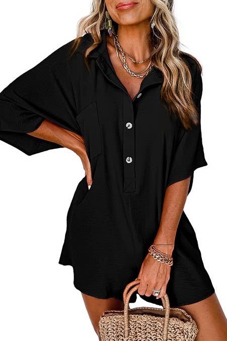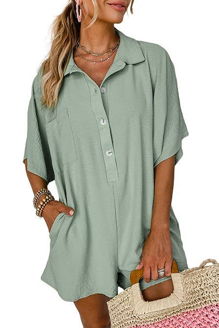 Button down overfit romper