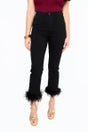 The Kyla Pants are the perfect choice for upscale comfort. The slim-fit pants are made of stretchy material and designed with functional pockets, a button and zipper fly, and unique feather ankle cuffs. This style will elevate any outfit, taking you from day to night with ease.