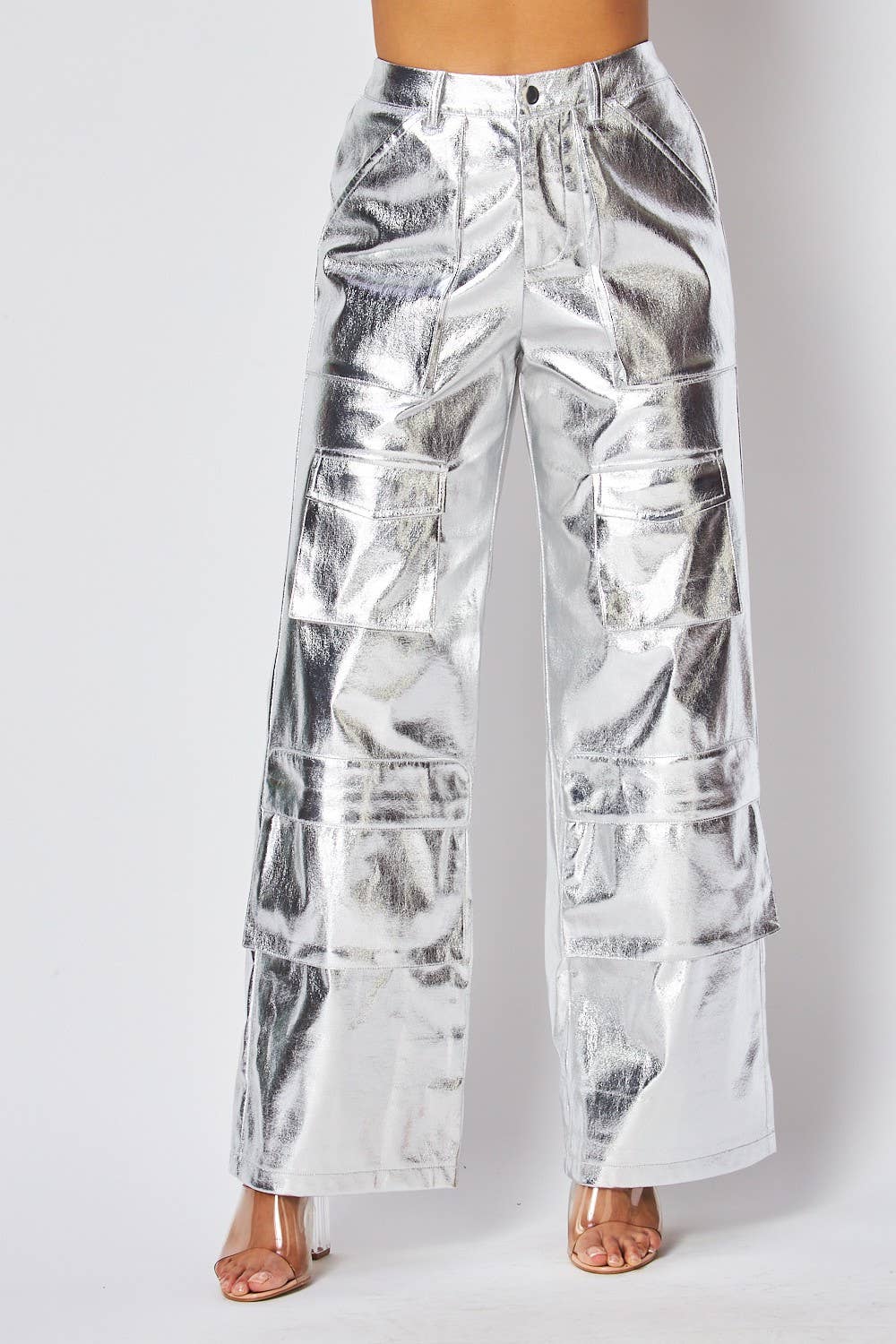 Dawn Metallic Cargo Pocket High Waist Pants (HDP31017) (Copy - M / Silver is backordered and will ship as soon as it is back in stock.