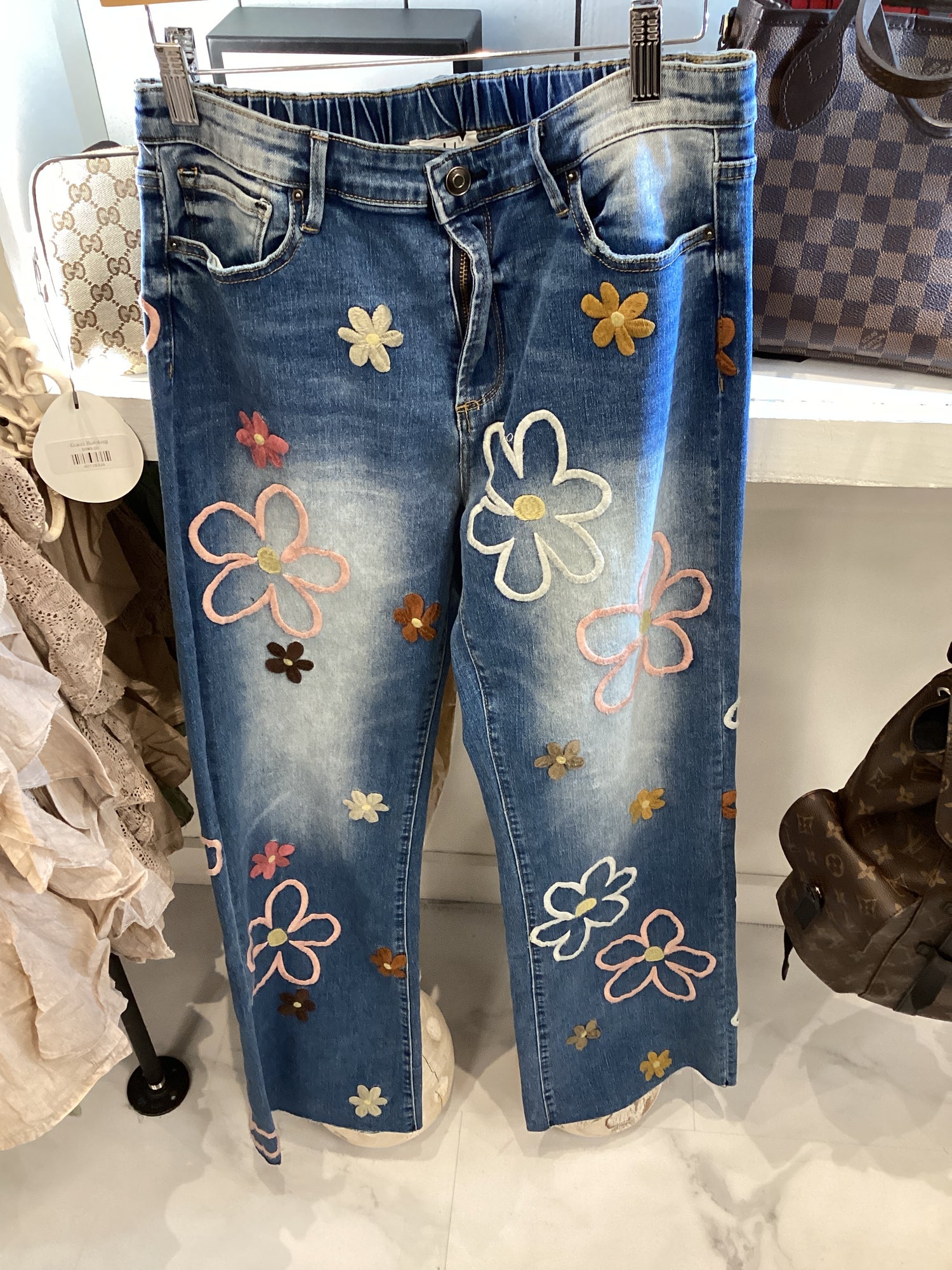 JP0688 Flower Embroidery Denim Pants - Small is backordered and will ship as soon as it is back in stock.