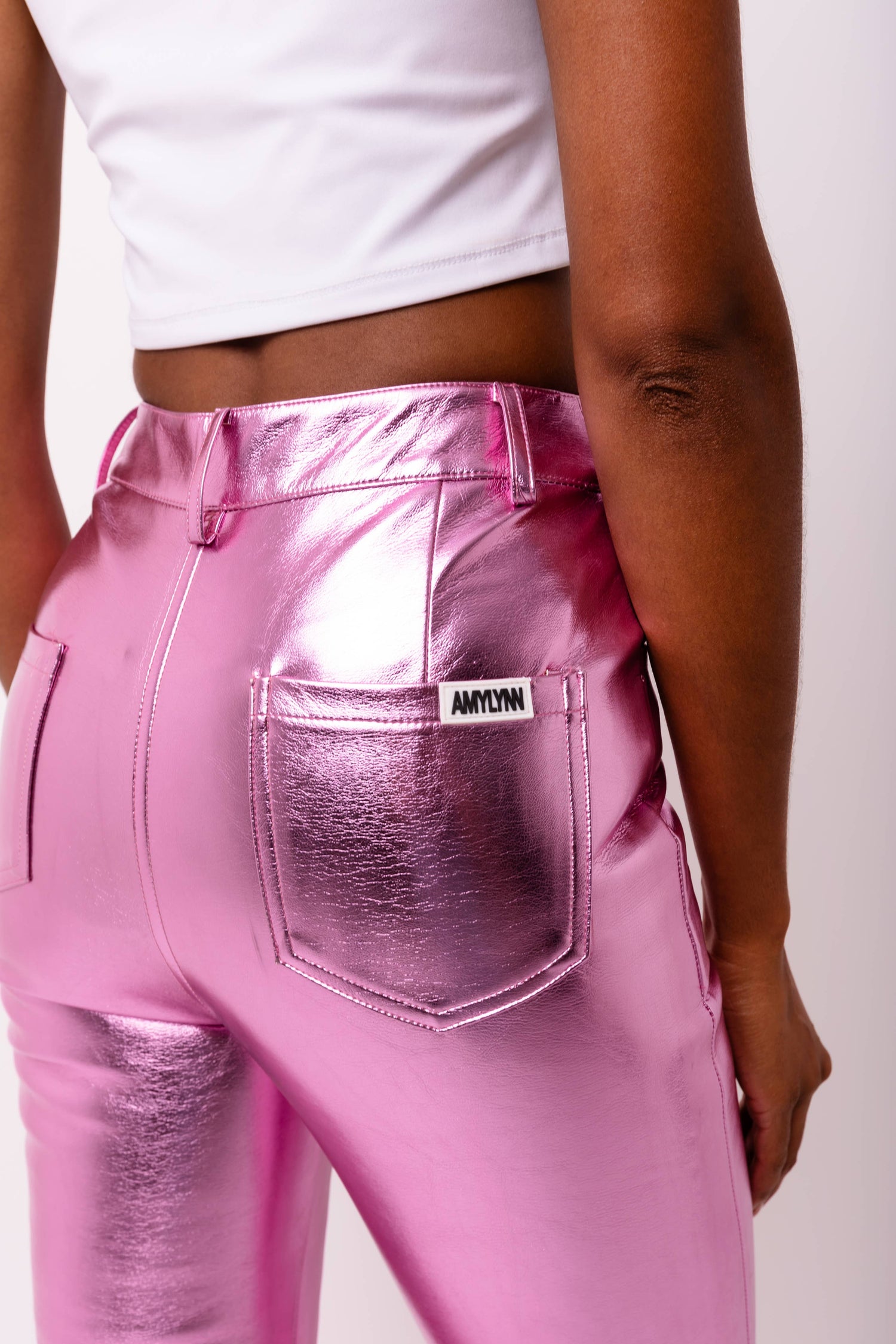 Lupe Metallic Faux Leather Slim Fit Pants - Large / Rose Pink is backordered and will ship as soon as it is back in stock.