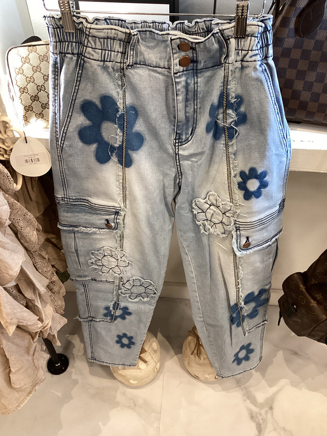 MB1093-B Daisy Cargo Denim Pants - Small is backordered and will ship as soon as it is back in stock.