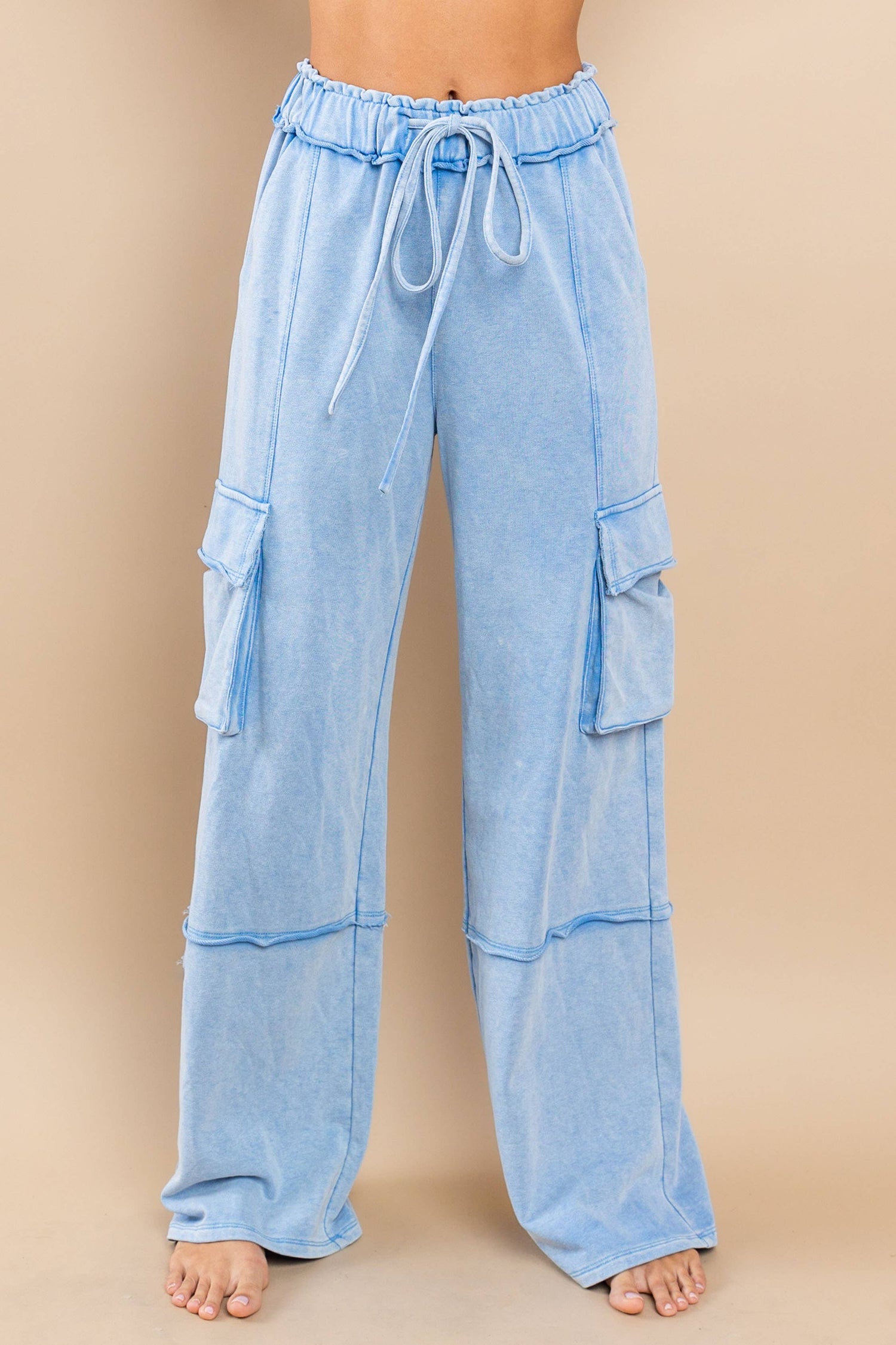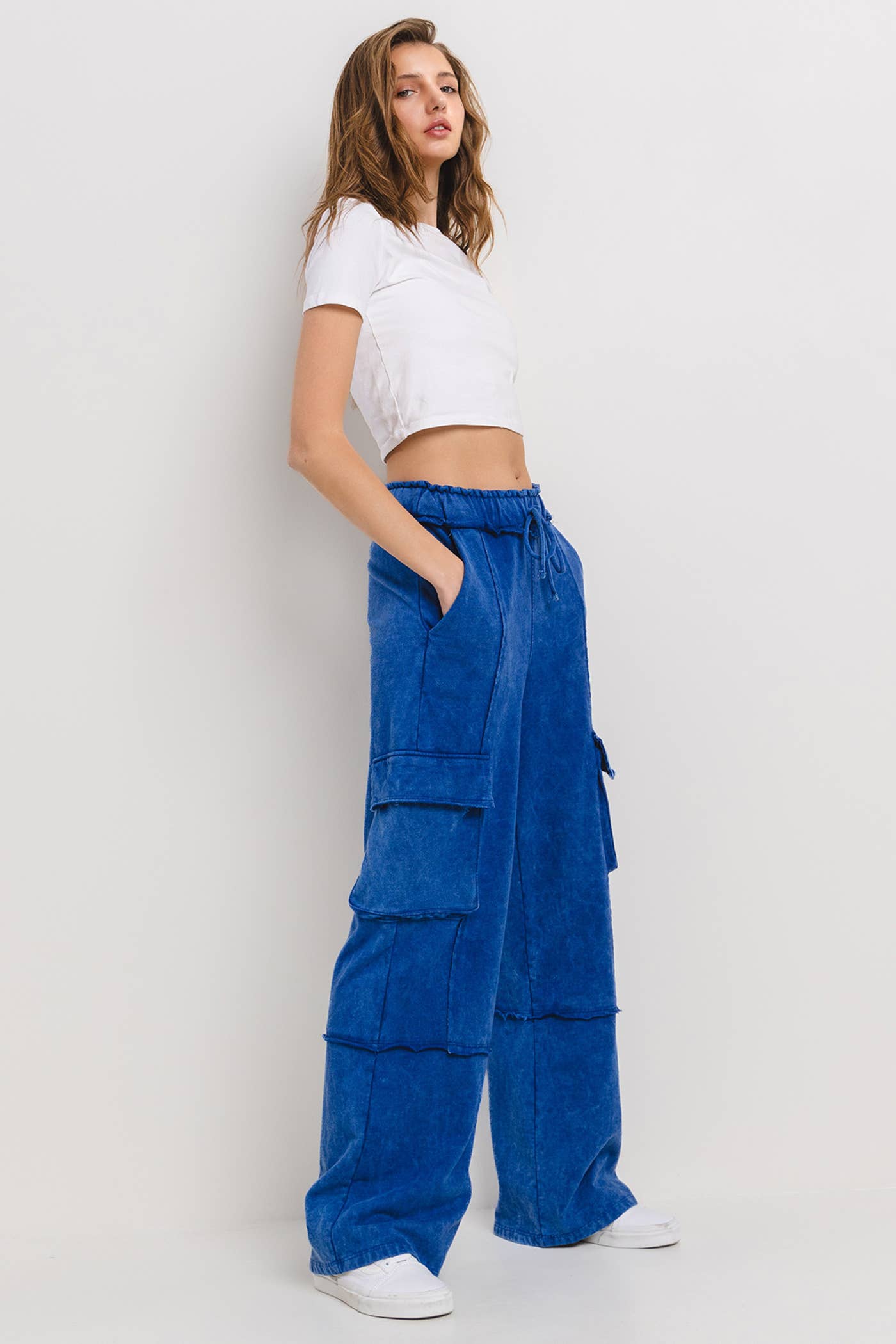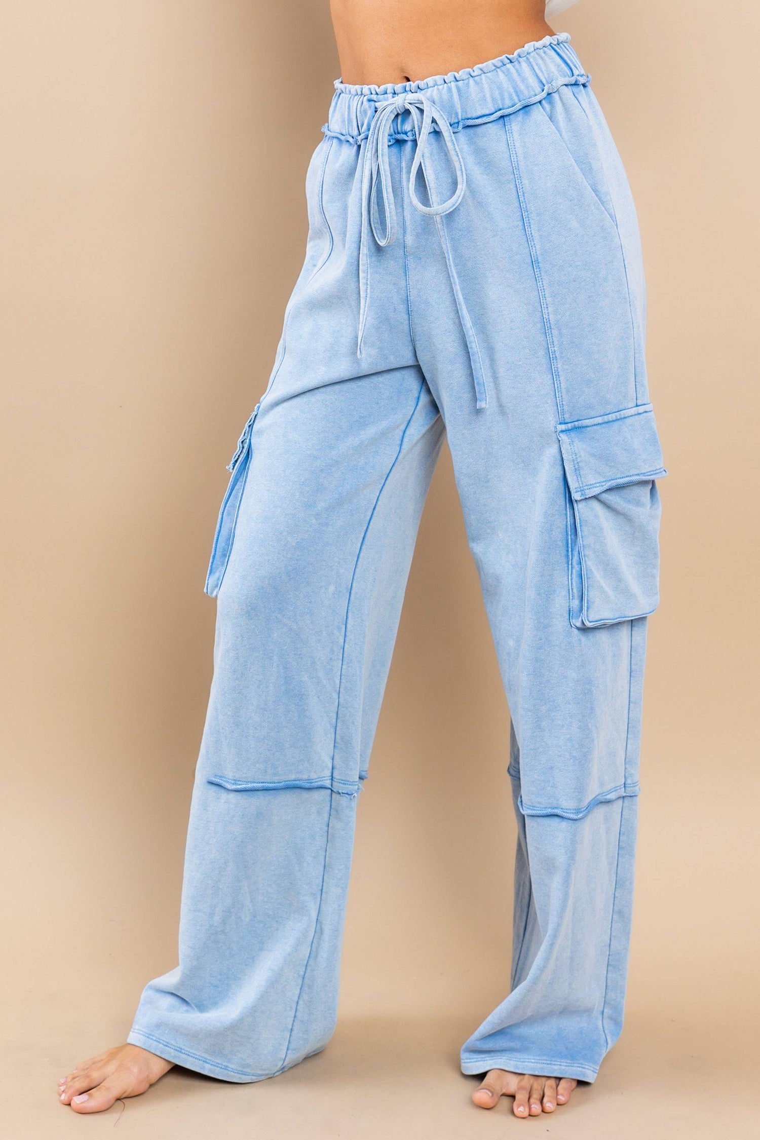 Mineral Washed French Terry Cargo Pants / BIC60890 - S-M-L (2-2-2) / Lavender is backordered and will ship as soon as it is back in stock.
