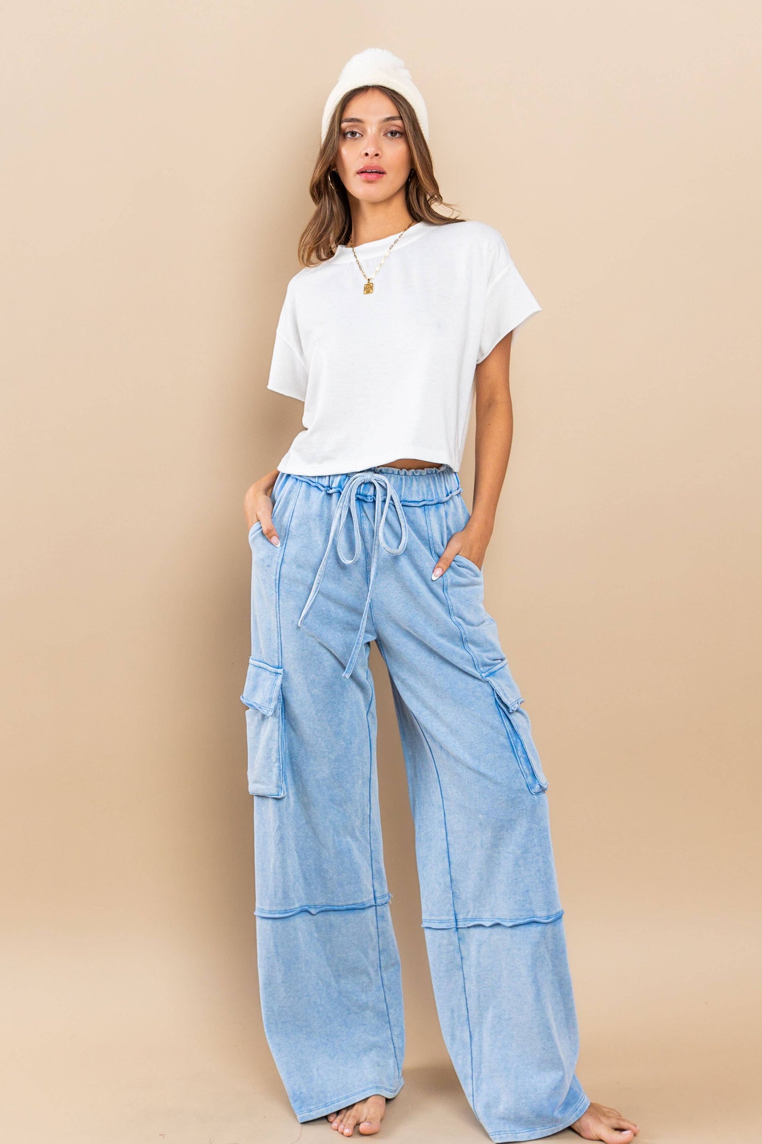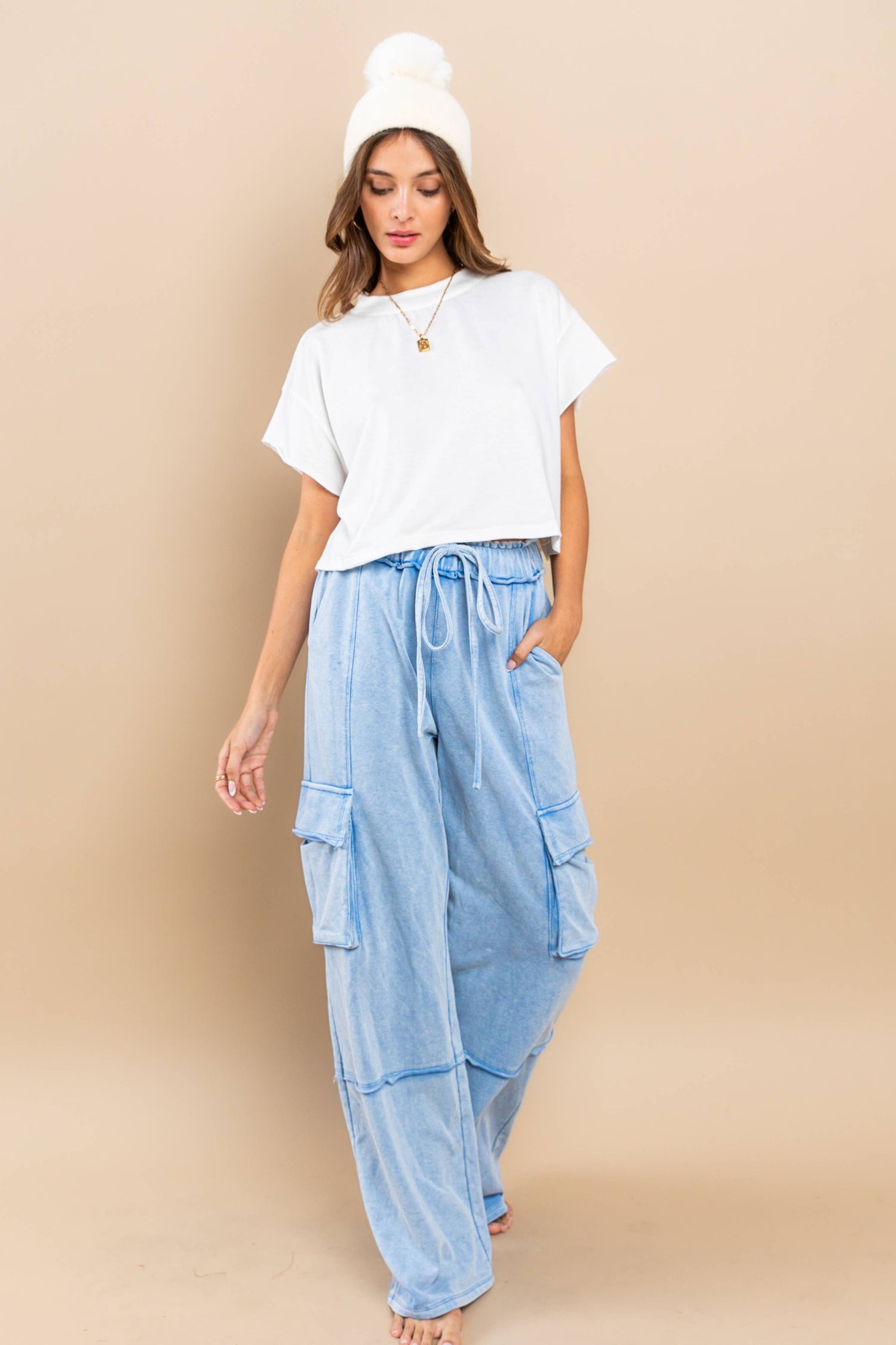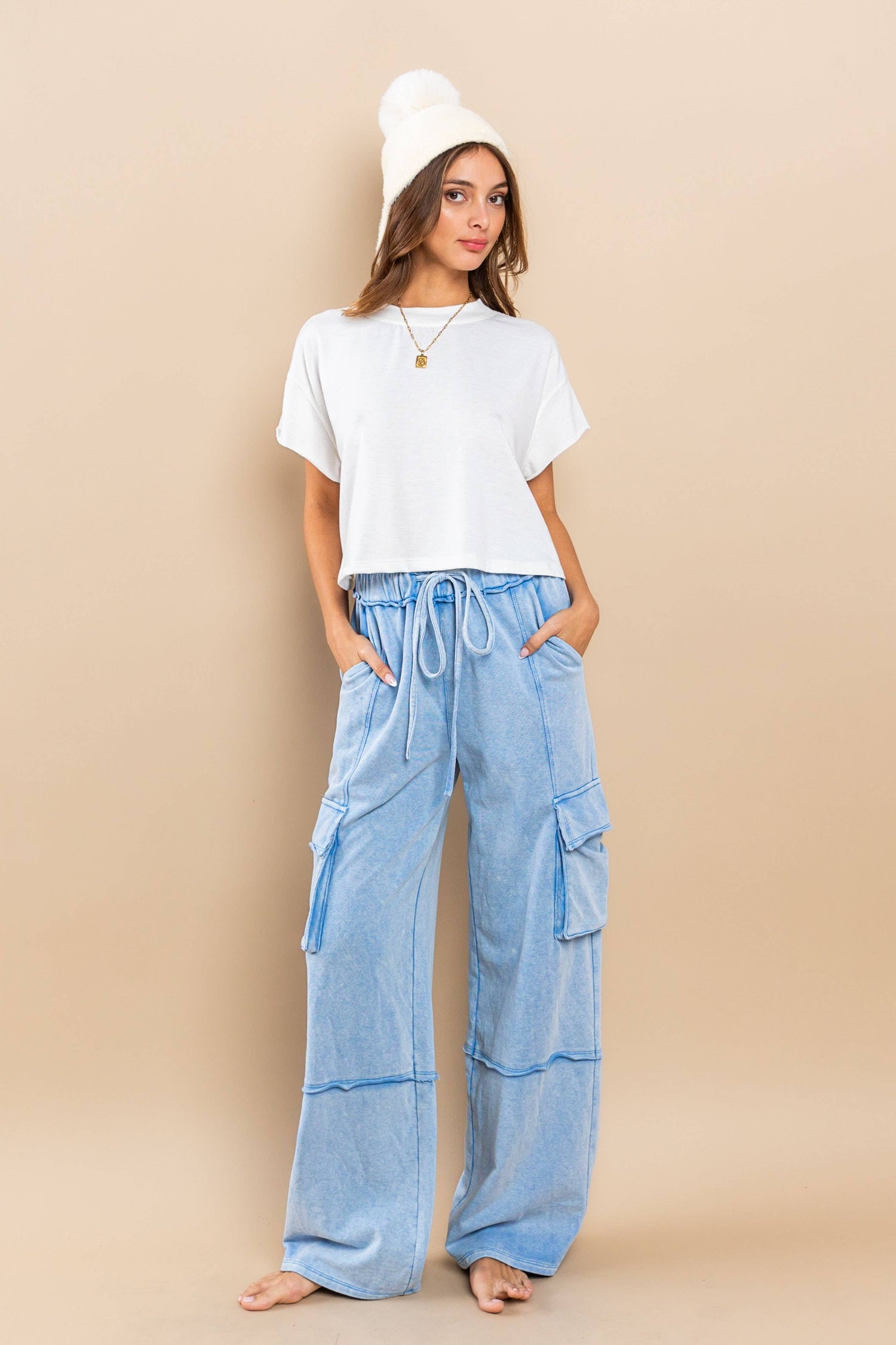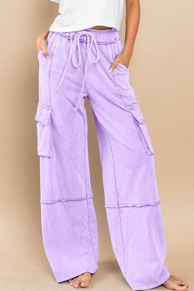 Mineral Washed French Terry Cargo Pants / BIC60890 - S-M-L (2-2-2) / Lavender is backordered and will ship as soon as it is back in stock.