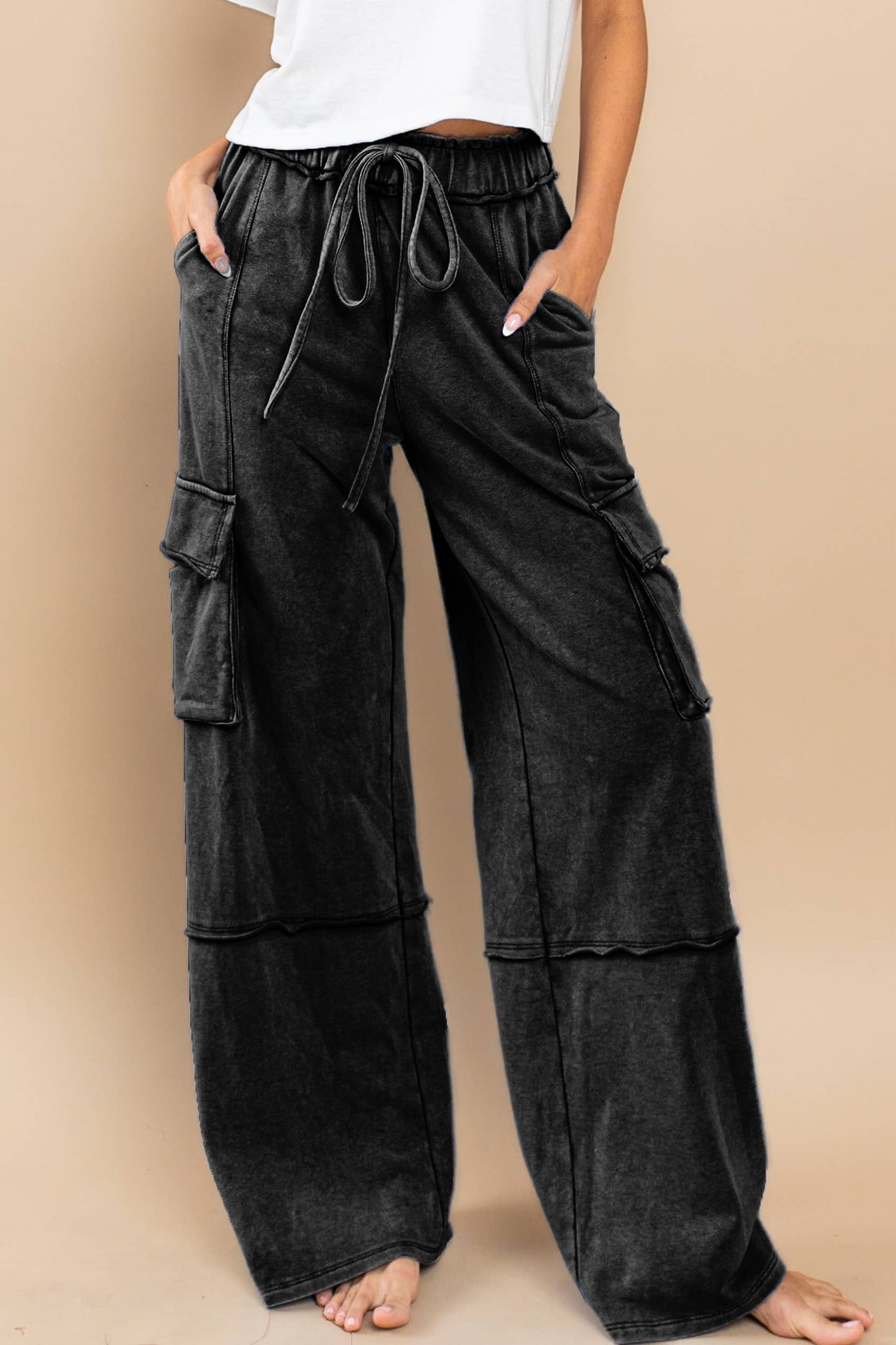 Mineral Washed French Terry Cargo Pants / BIC60890