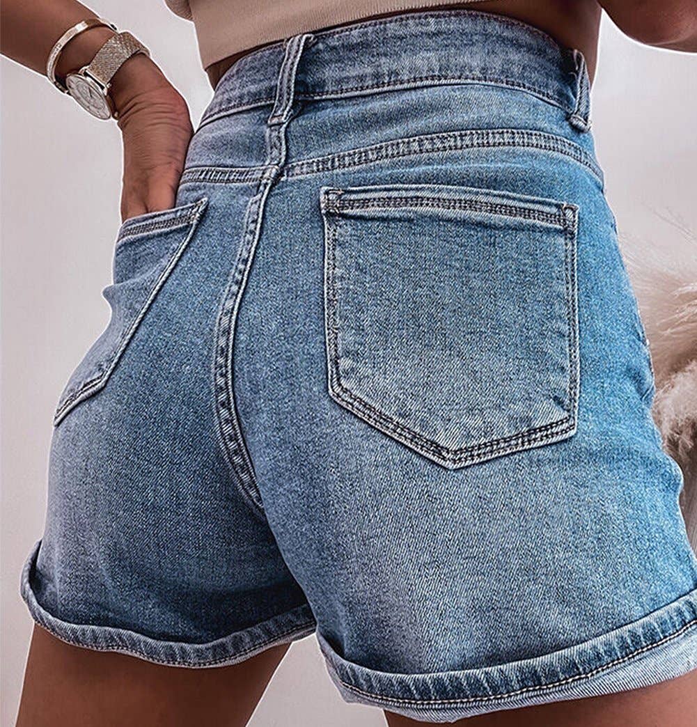 Rhinestone Embellished Denim Shorts - L / Blue is backordered and will ship as soon as it is back in stock.