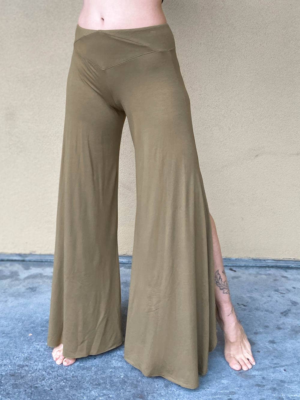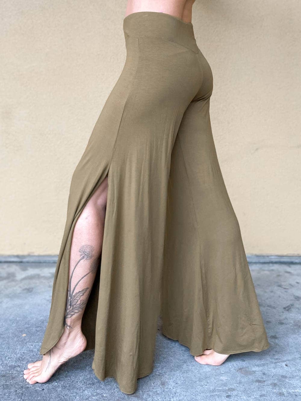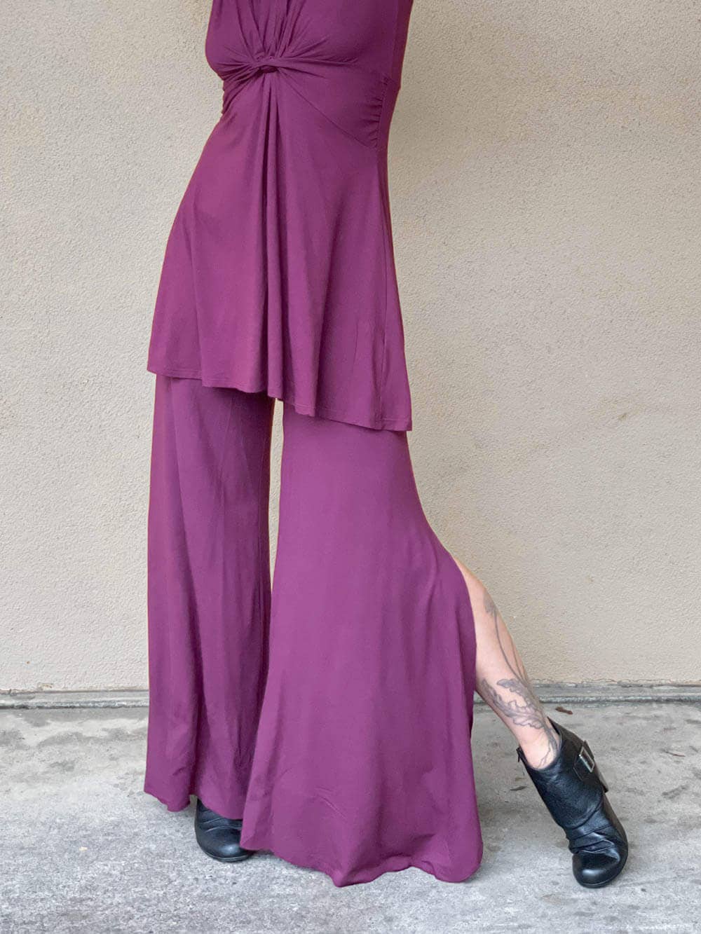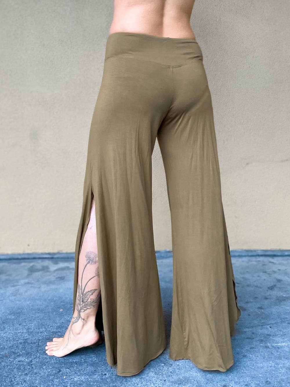 Our best-selling wide-leg flare pants have a side-leg slit so you can show off your sandals or boots, depending on the season. The jersey fabric is stretchy and flows effortlessly as you move. The flat-fit waistband makes them ideal for layering.
