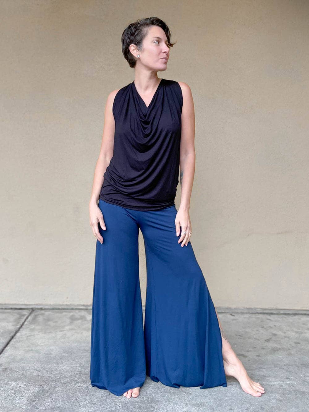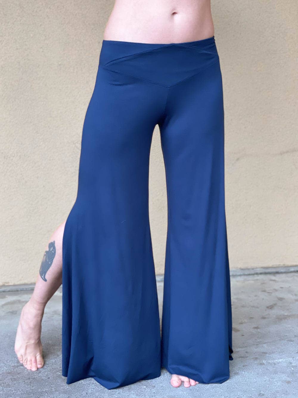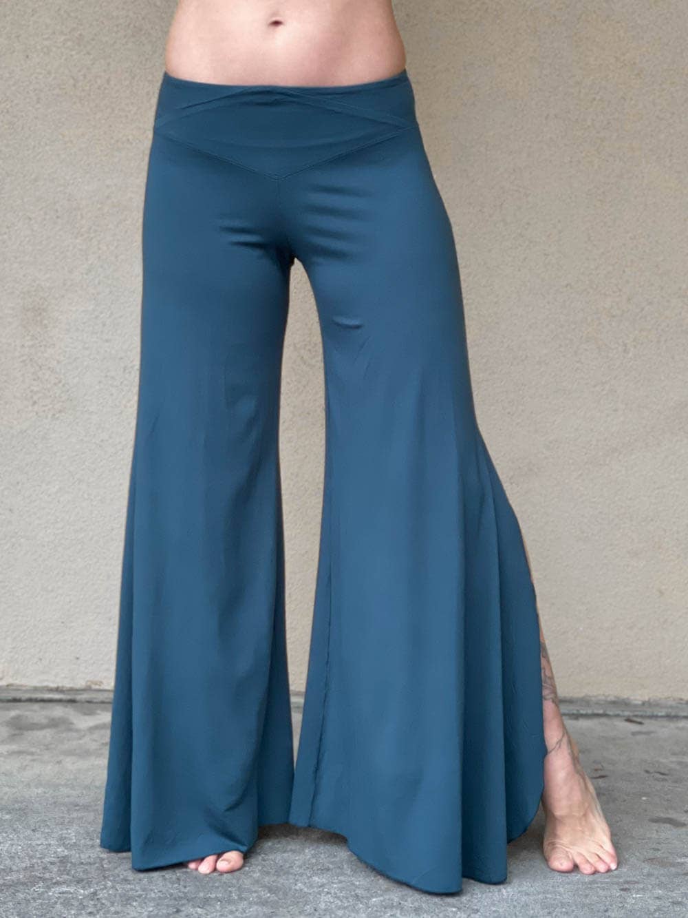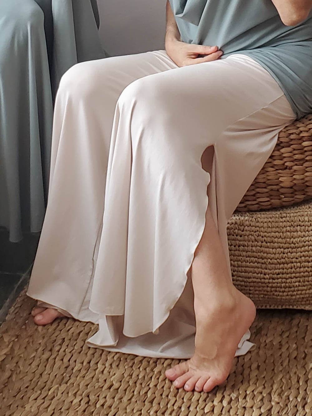 Our best-selling wide-leg flare pants have a side-leg slit so you can show off your sandals or boots, depending on the season. The jersey fabric is stretchy and flows effortlessly as you move. The flat-fit waistband makes them ideal for layering.