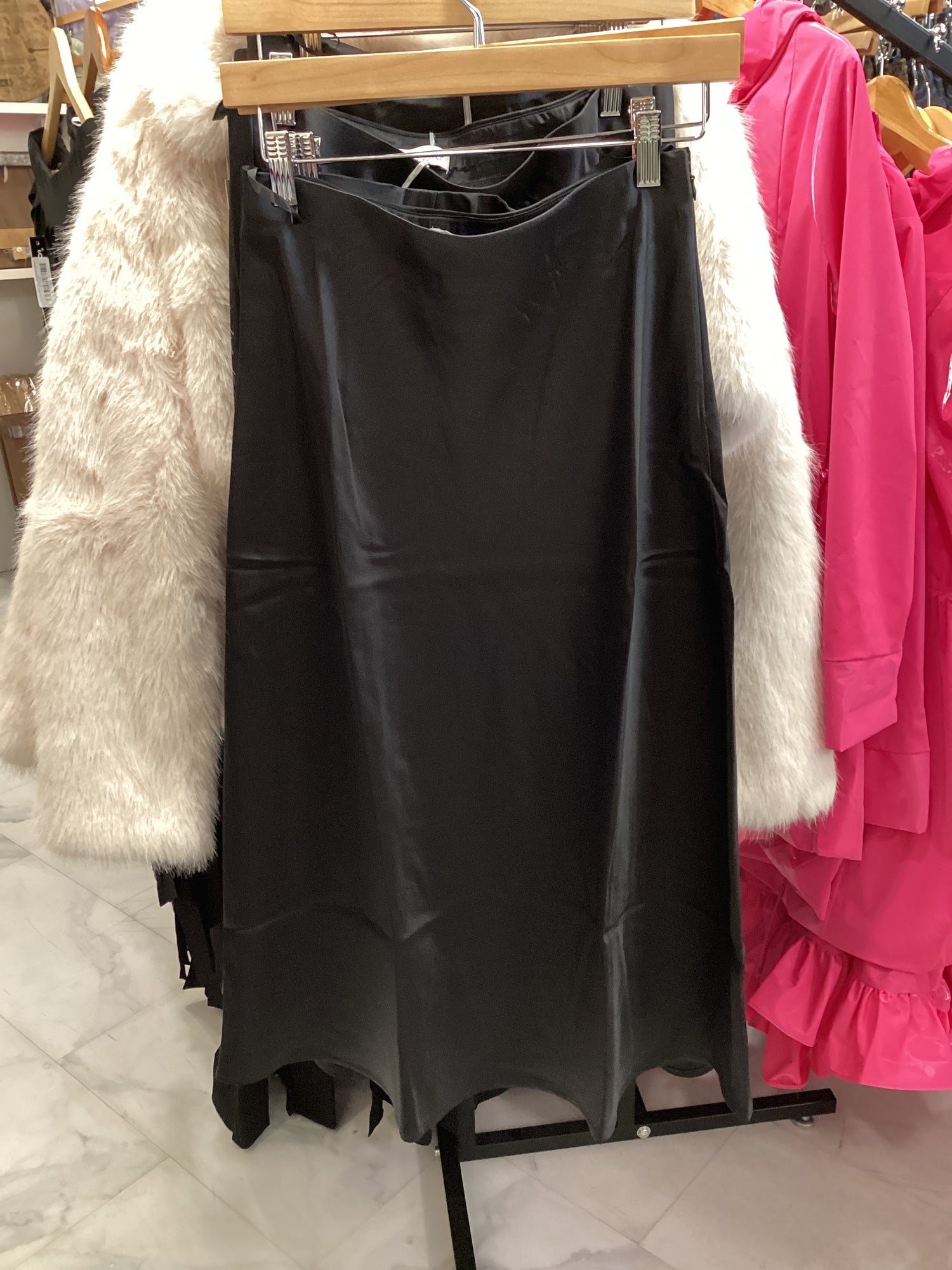 SY7030 Midi Satin Skirt - Small / Black is backordered and will ship as soon as it is back in stock.