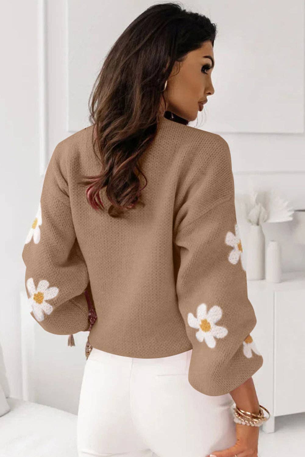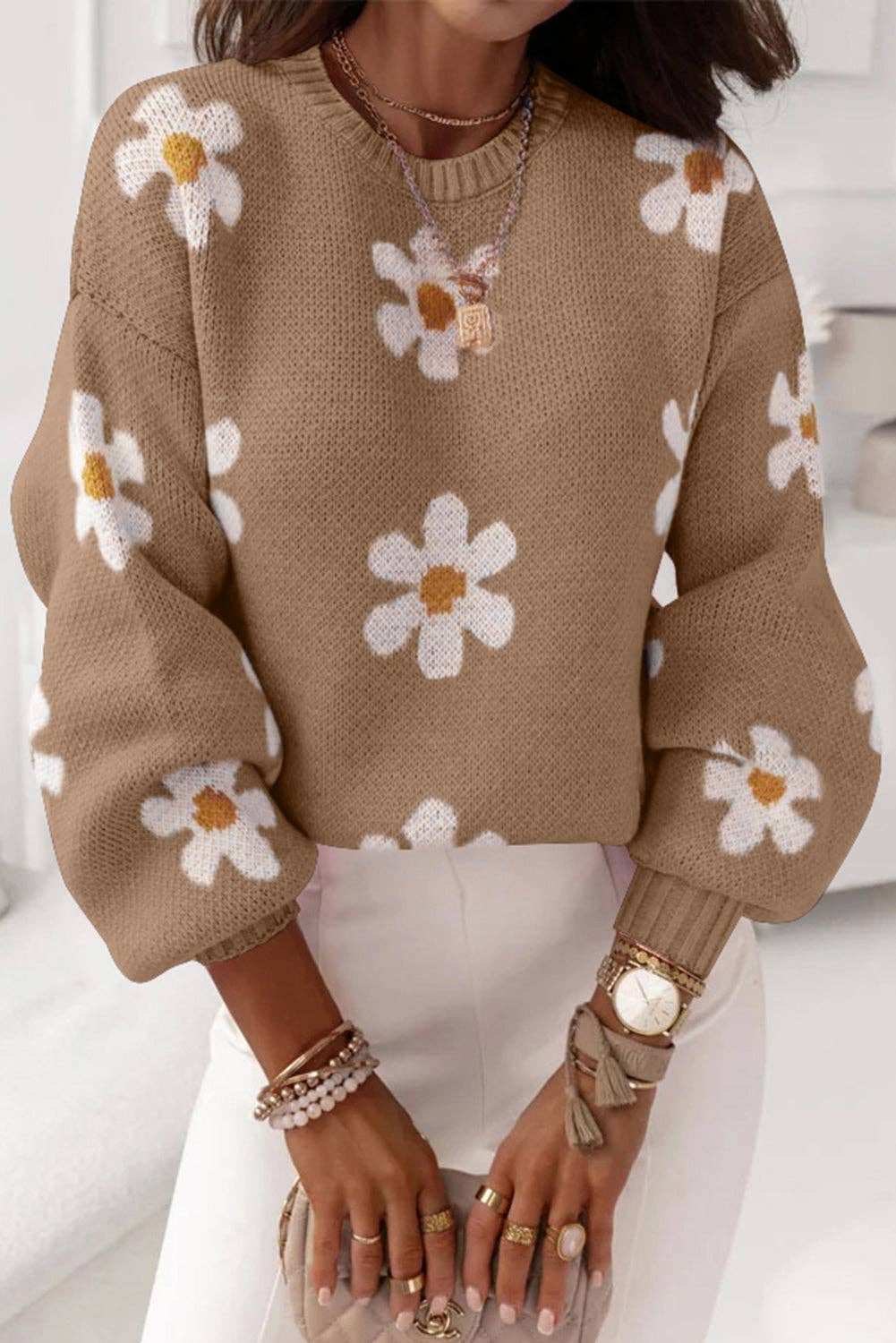 Apricot khaki Pink Floral Pattern Drop Shoulder Sweater - 57%Viscose+23%Elastane+20%Polyamide / Apricot khaki / Small is backordered and will ship as soon as it is back in stock.