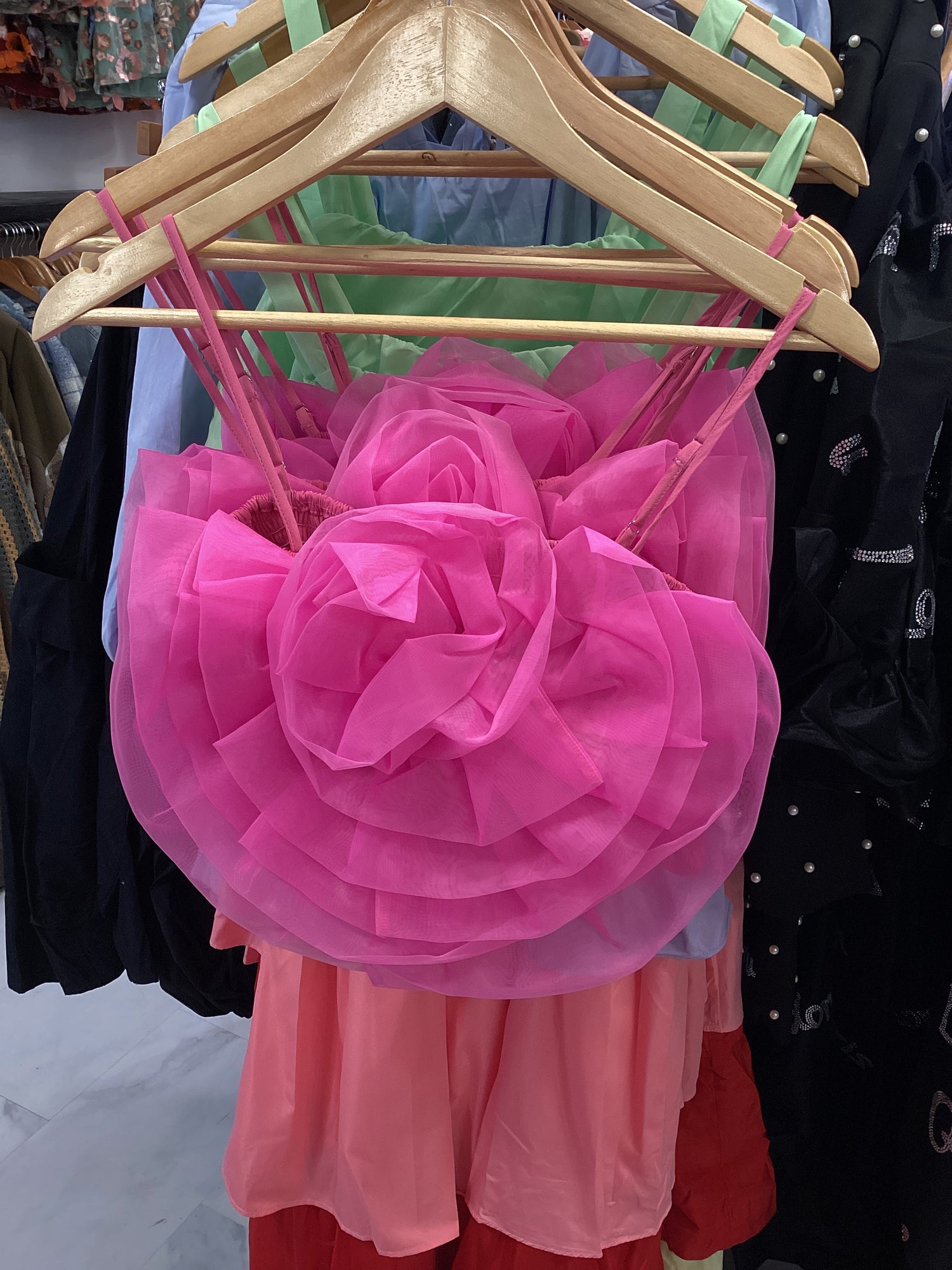 Sunny days are calling, and you need to answer them in the Petal Top! This cropped tank features a statement organza flower placed in the front, adjustable straps, and is smocked all the way around for a comfortable fit!