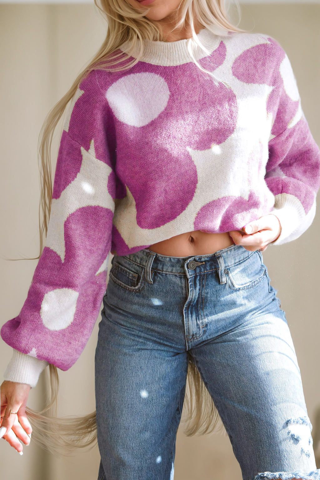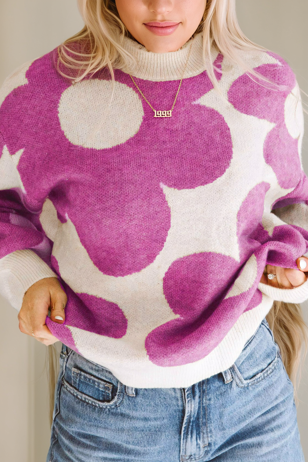 This floral pattern knit sweater is perfect for those who love unique and bold fashion statements