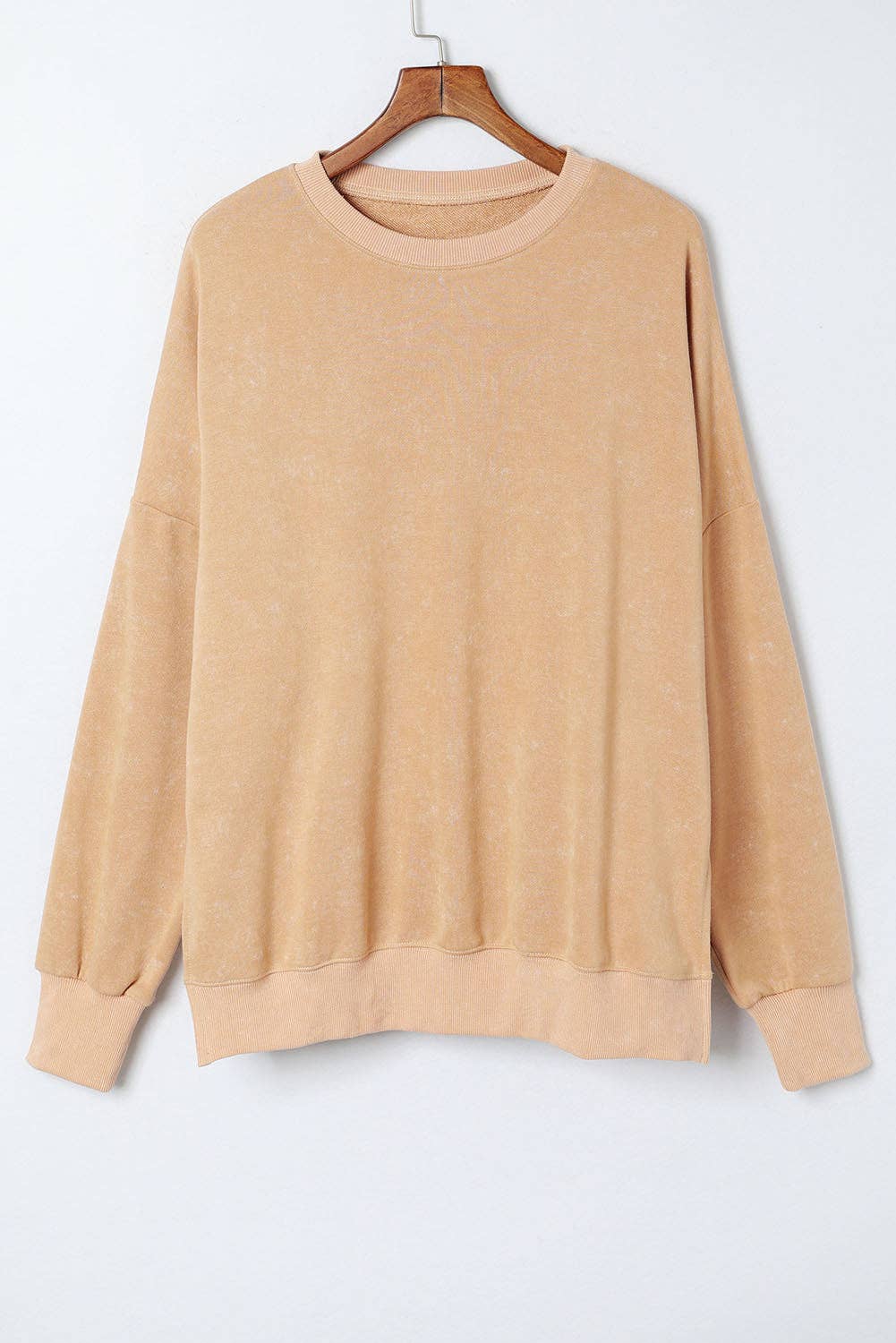 Khaki Drop Shoulder Ribbed Trim Oversized Sweatshirt: Khaki / M / 75%Polyester+25%Cotton