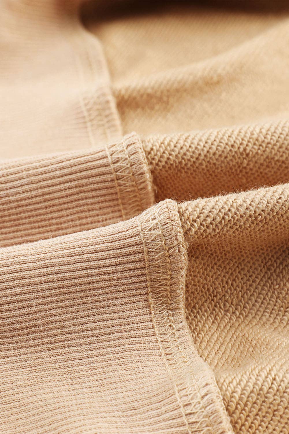 Khaki Drop Shoulder Ribbed Trim Oversized Sweatshirt: Khaki / S / 75%Polyester+25%Cotton
