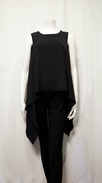 S19061 Blk Stretch Crepe 2 layers side tail blouse - Small is backordered and will ship as soon as it is back in stock.